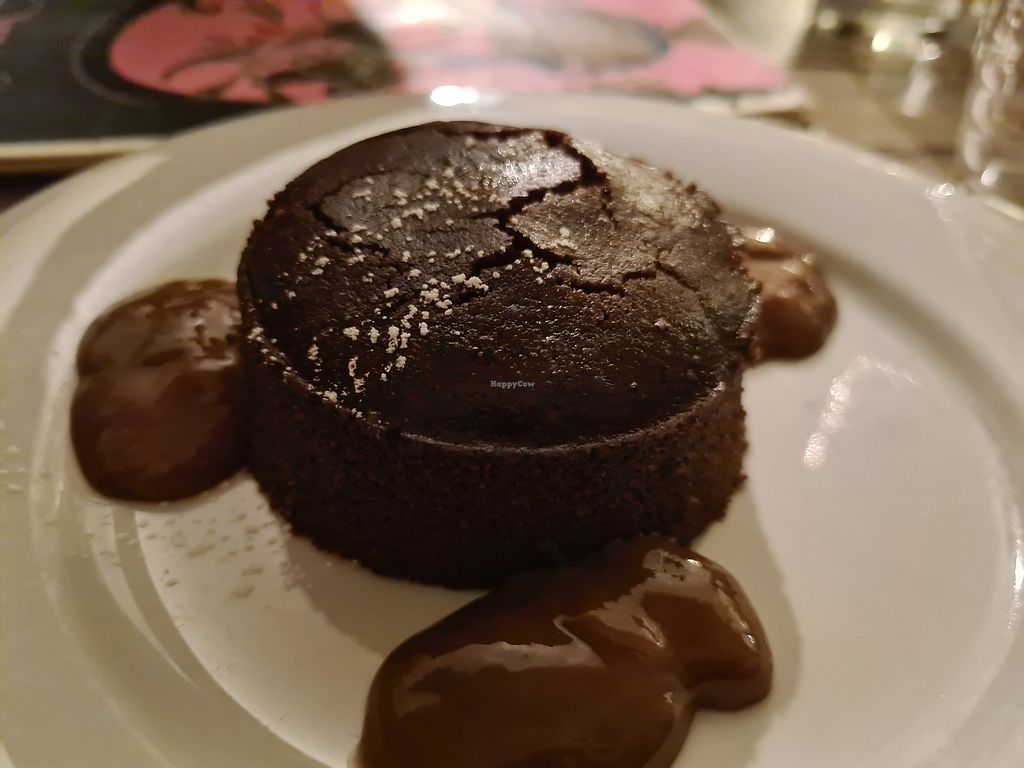 Restaurant has no animal products whatsoever. Everything is vegan. We had an amazing Seitan Rôtis with truffle cream, the entrée was une assiette de tartinades à partager (a plate full of different spreads, enough for at least 2 people) and as Dessert we had creme brûlée (which was good) and a moelleux de chocolate (like a very moist, dense chocolate cake, it was incredible).