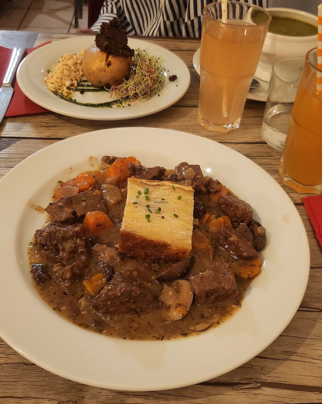 We went there for dinner and it was great. Nice service, food came super quickly. The food — I had the Bourgnuignon de seitan — was great. Overall really advice to go here for your next Paris Trip!