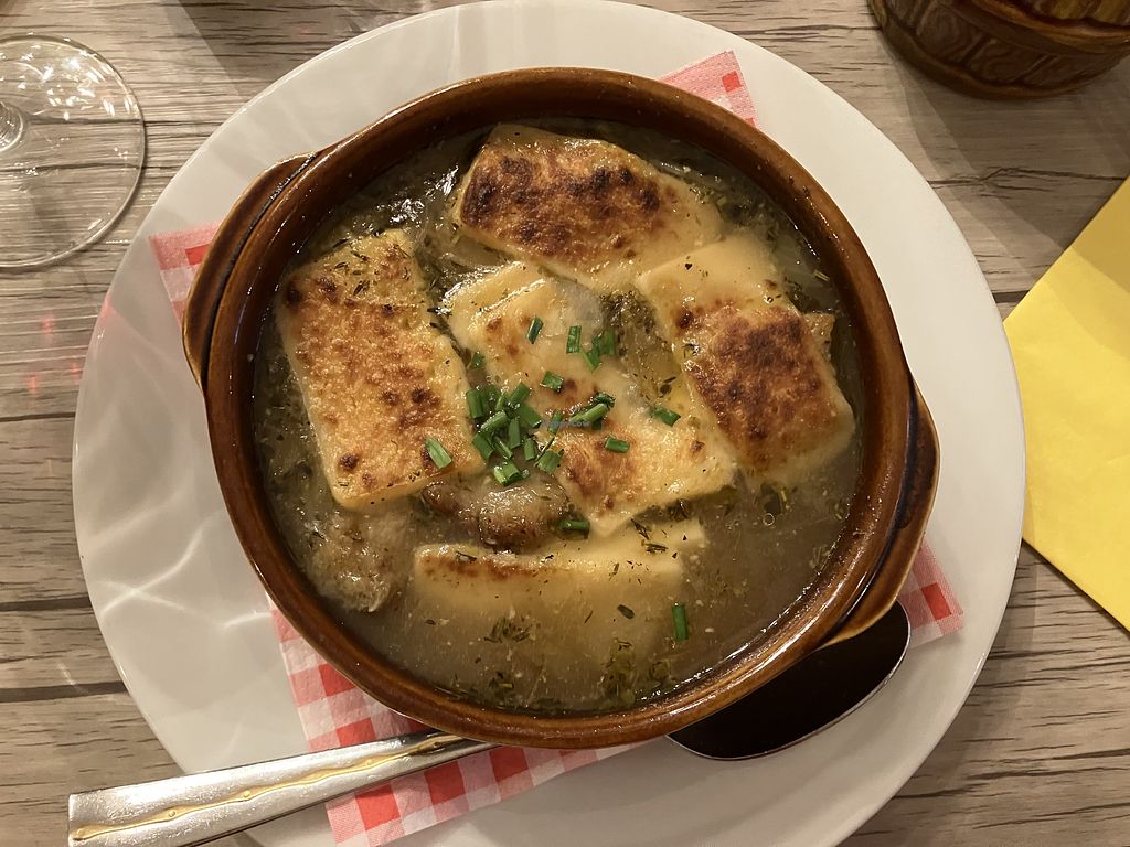 Entrées: Pomme de terre rôtie and Mushroom pâté