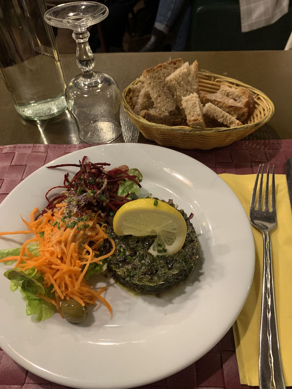 The meatballs à la Provençale (bottom) and the Roulé de Lupin à la Flo…