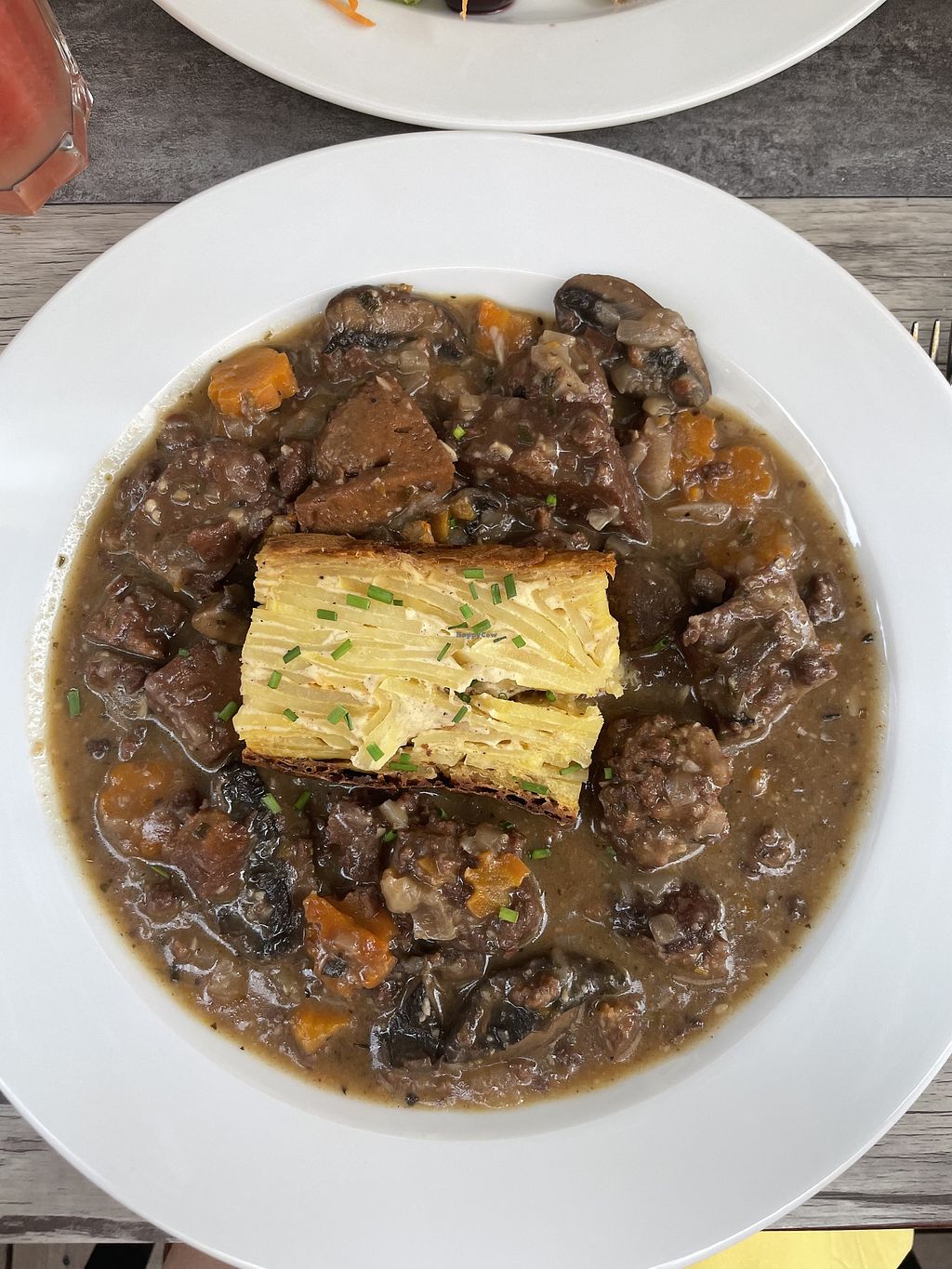 Seitan bourguignon and french onion soup