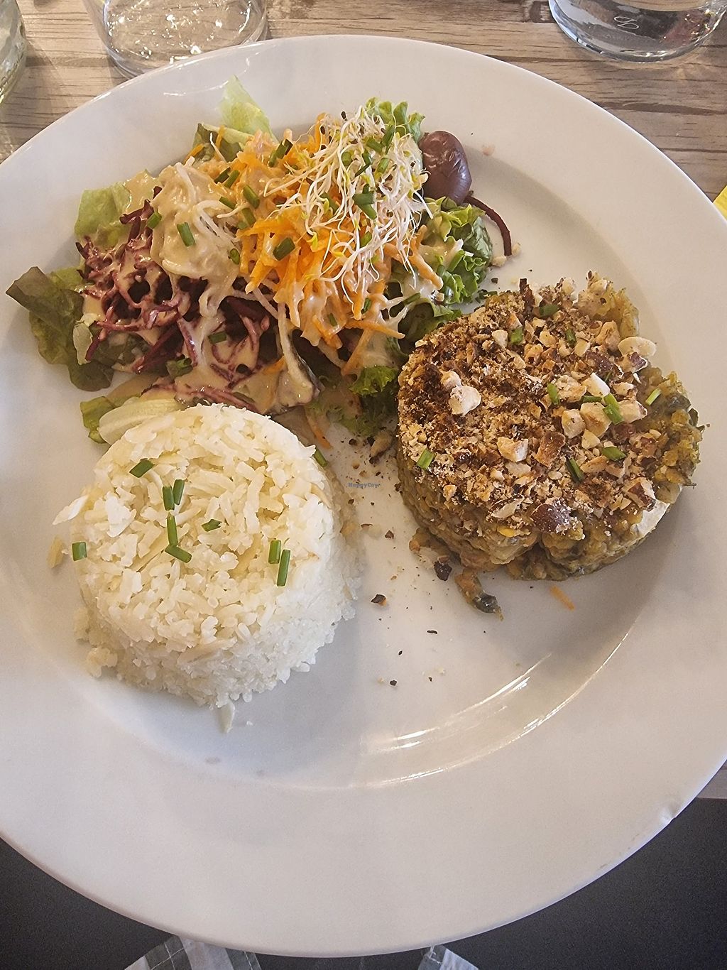 Amazing gaspacho and mushroom pate to start, followed by lasagne and a tofu salad. Tasty and super filling. Really cosy little place and nice vegan beer too