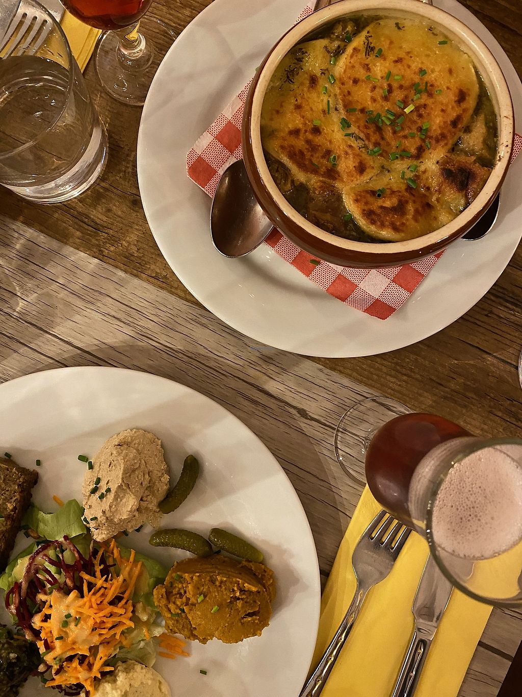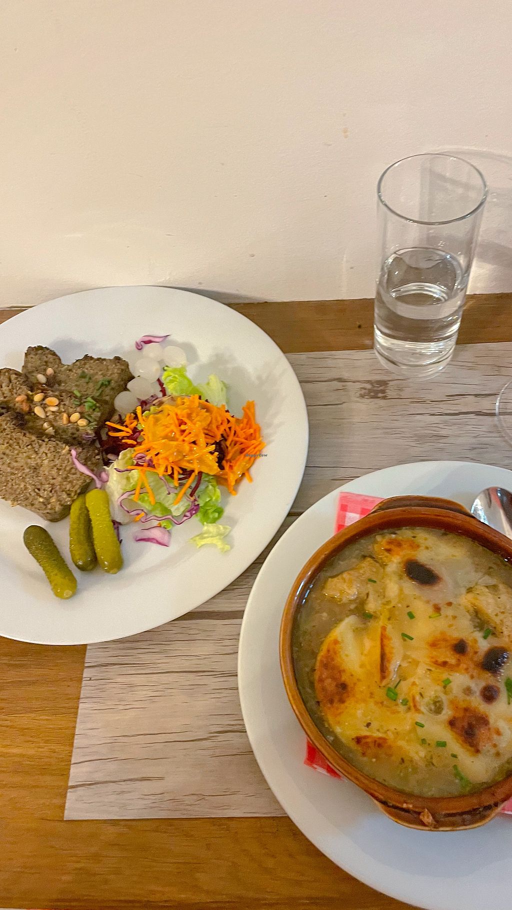 really enjoyed typical french and completely vegan dishes - especially the onion soup and the gratin…also the service was friendly although they were encouraging me to use my French-skills (but in a really charming way) 😂