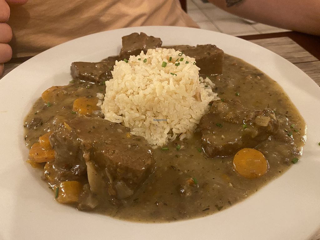 Read moreHaving French Onion Soup, safe in the knowledge that there is no animal-based stock, is such a treat. Their version arrives topped with vegan cheese and plenty of croutons. Even at the end of a hot day (our most recent visit), we couldn’t deviate from the soup, followed by the delicious Seitan Bourguignon with potatoes.