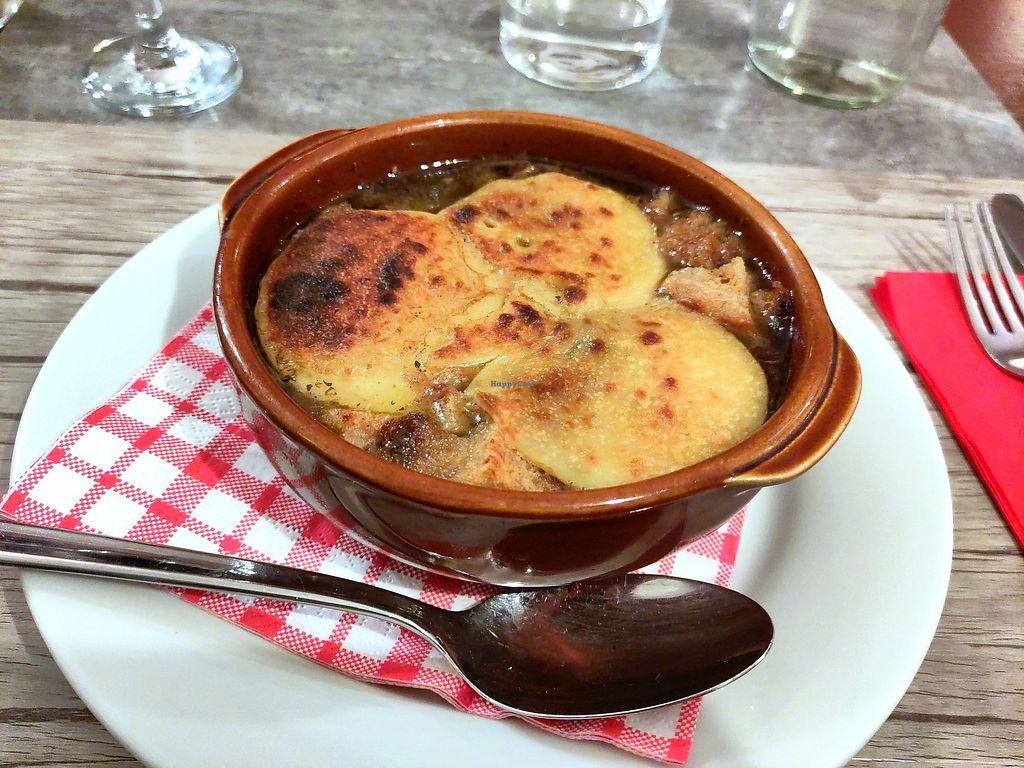 Read moreI can't hide that the Onion Soup was the highlight on our meal. I can't really compare it, because it is my first. But it was really delicious. Great balanced but very pronounced flavors. The vegan cheese on top was amazing and the croutons add a great texture to a wonderful soup that I can only expect to be done in a small village, where they decide to spare the beef for the broth.