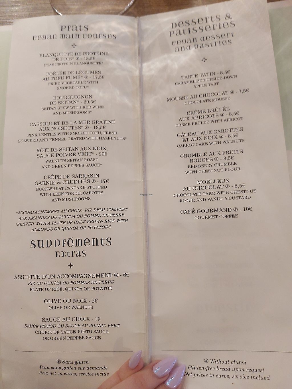 Pros: Fully vegan , Very friendly staff, Traditional french options