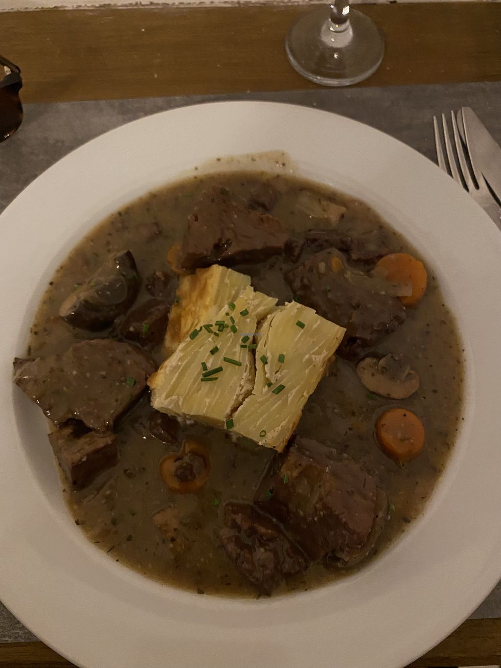 Would highly recommend making a reservation beforehand as the tables were filled very quickly. We did try emailing them a day before but heard nothing back (and still haven't...) so 100% call or pop in during the day to book. We opted for the beef bourguignon with potato and chocolate mousse for dessert. The mains were very tasty and filling, the beef seitan very flavourful and seemed to be home made. The service was friendly, and I was impressed by the two waiters. They were running the place very efficiently - no unnecessary waits for food or drinks. Food was quite pricey, although the menu stated that the prices included service charge, although not sure how much of this inflates the price.