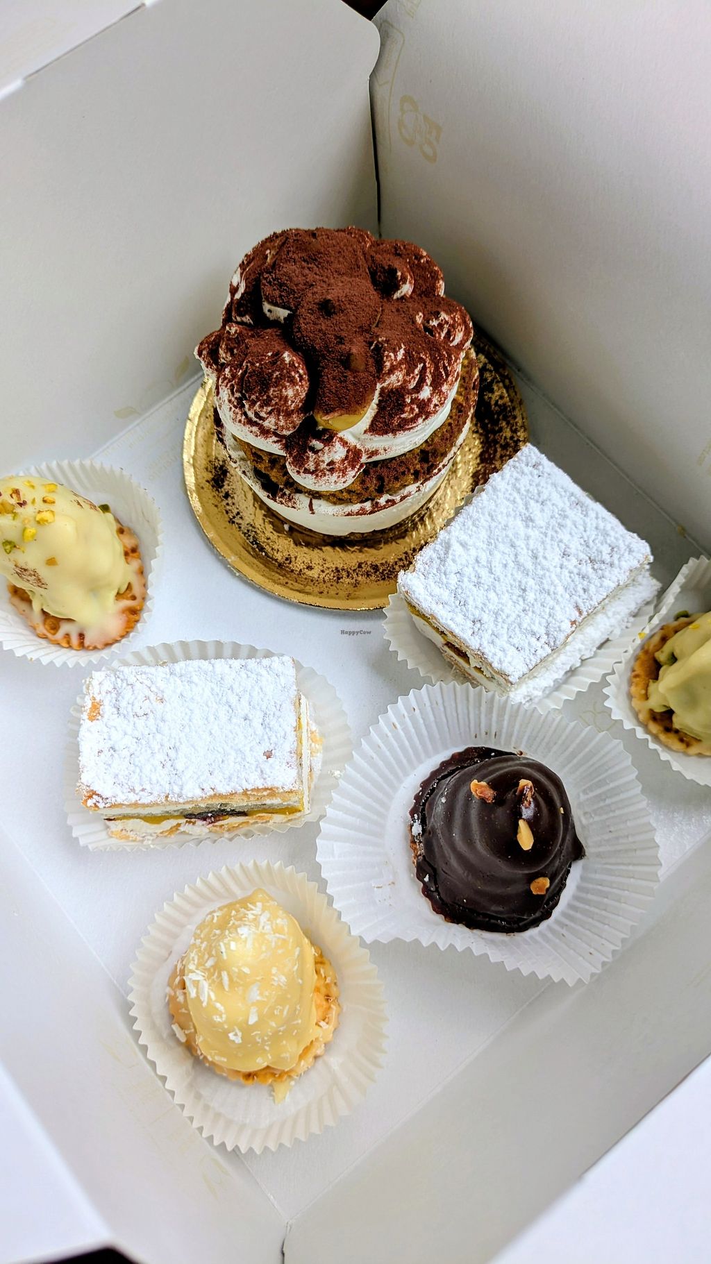 This is a complete vegan pastry. They have a good selection of small and normal dimensions. For me everything was tasty. It is a take away mainly and they don't have coffee. Since it is Easter I also bought a "colomba " typical sweet from this period. I paid 48 euro. I don't know the details price but I found a bit for 3 small pastries and 1 colomba. The owner told me that cannoli was a present and he also made me taste the colomba.