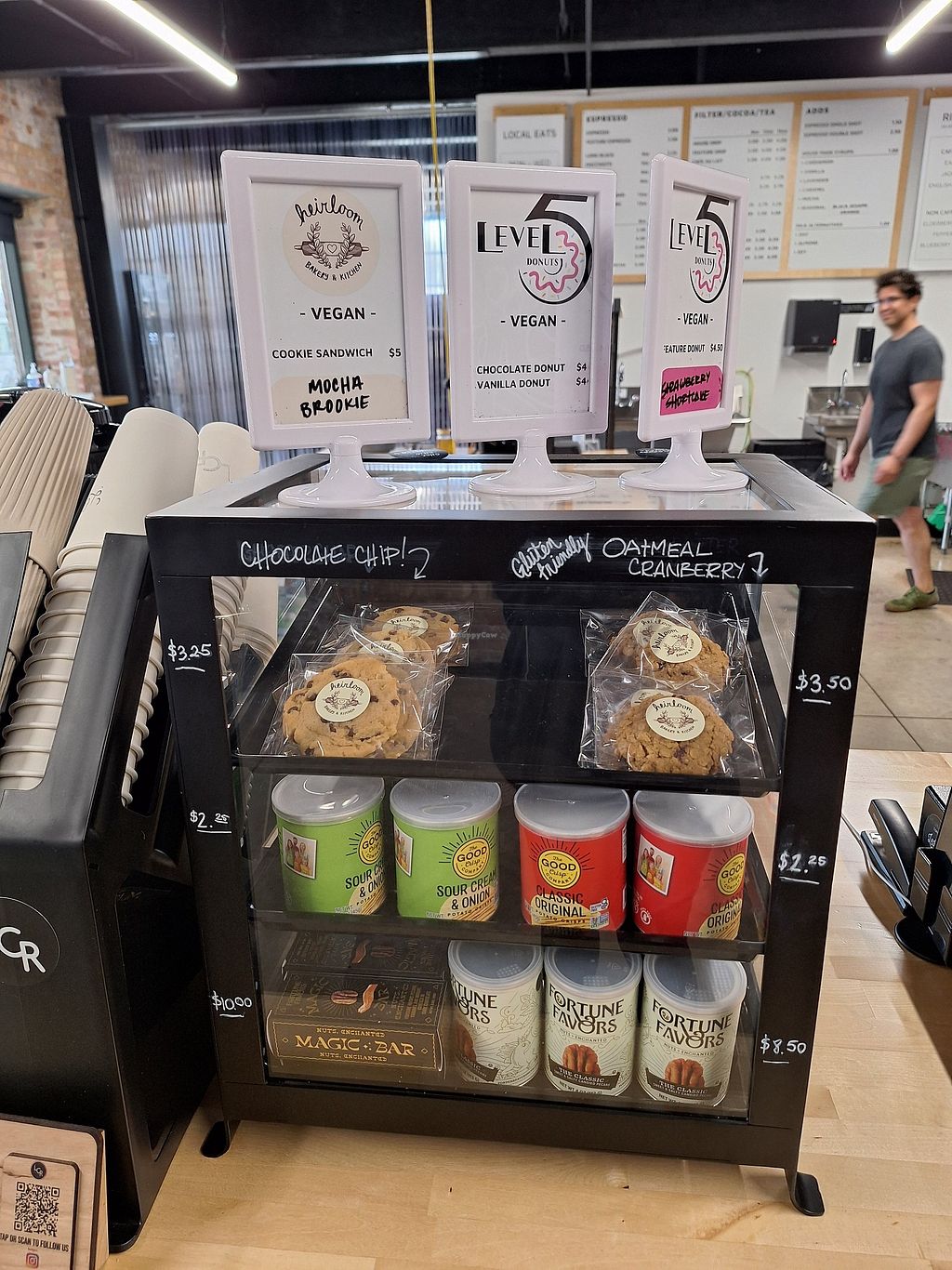 Pros: Soy, oat, or almond milk to choose from , Pastries are all vegan, Friendly staff