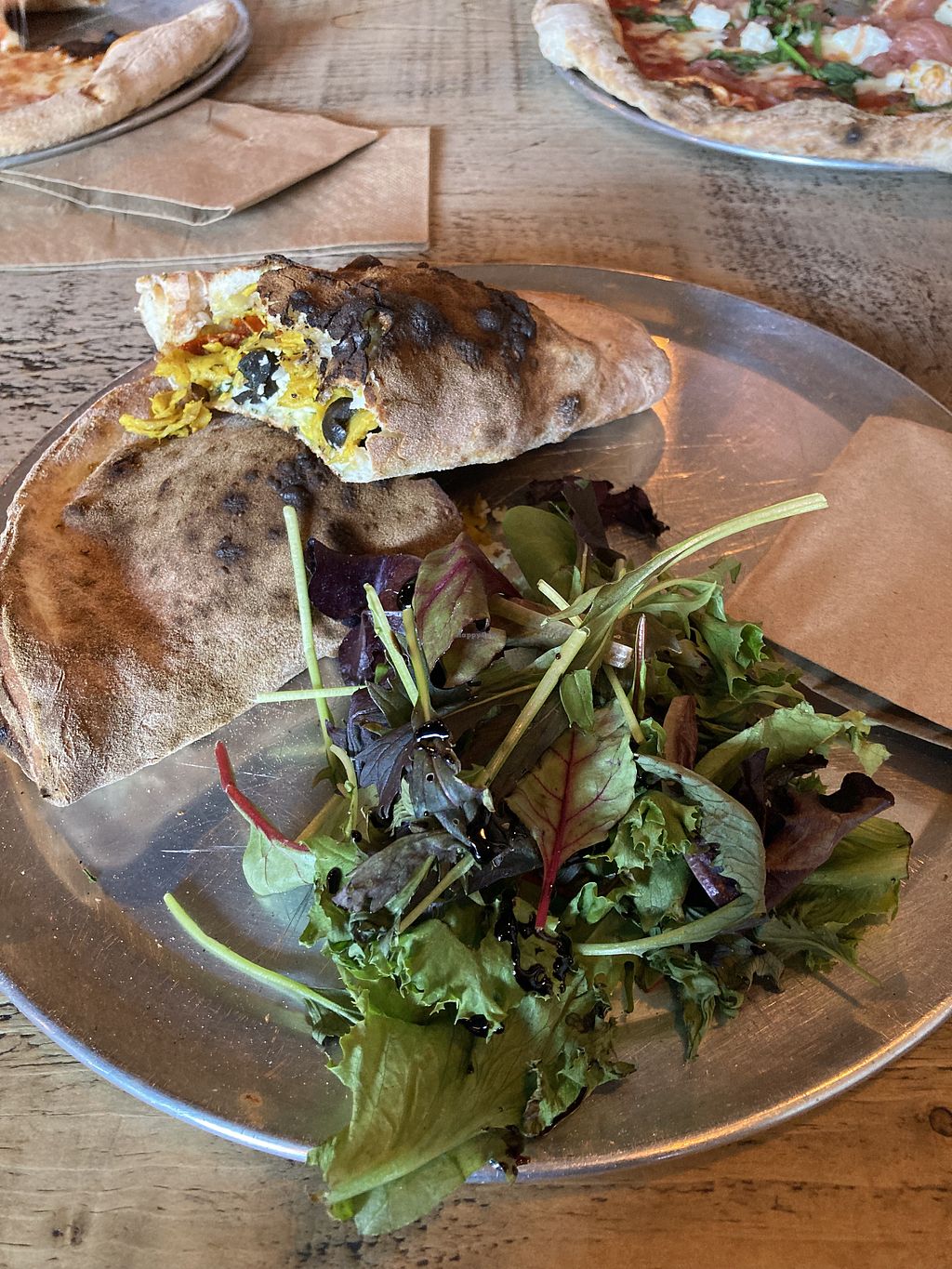 Omg the Pesto Pascal pizza is so good. The place is very cool and has tons of seating space. Tons of vegan options.