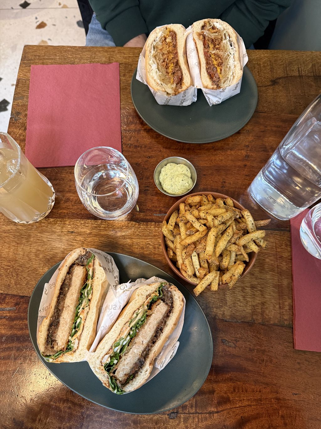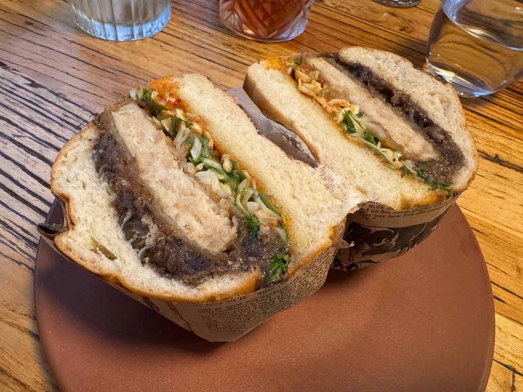 I went with the Tonton Katsu (14,50€) which resonated with my Japanese sando obsession. They create a tonkatsu seitan and add a sesame cream with eggplant and yuzu sauce. When the sandwich came out, damn did it look and taste amazing. The sando was perfect and filled all the cravings we had.