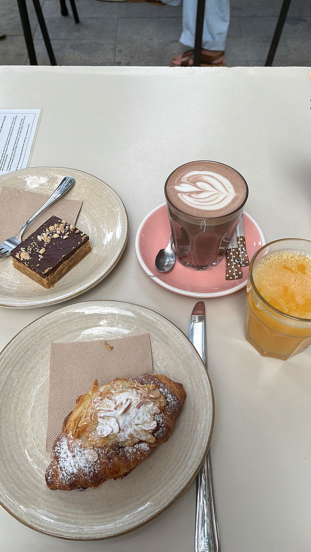 Heerlijk! Veel keuze: croissants en andere koffiekoeken, toasts, taartjes enz. Ook vriendelijke bediening en leuke plek om te zitten.