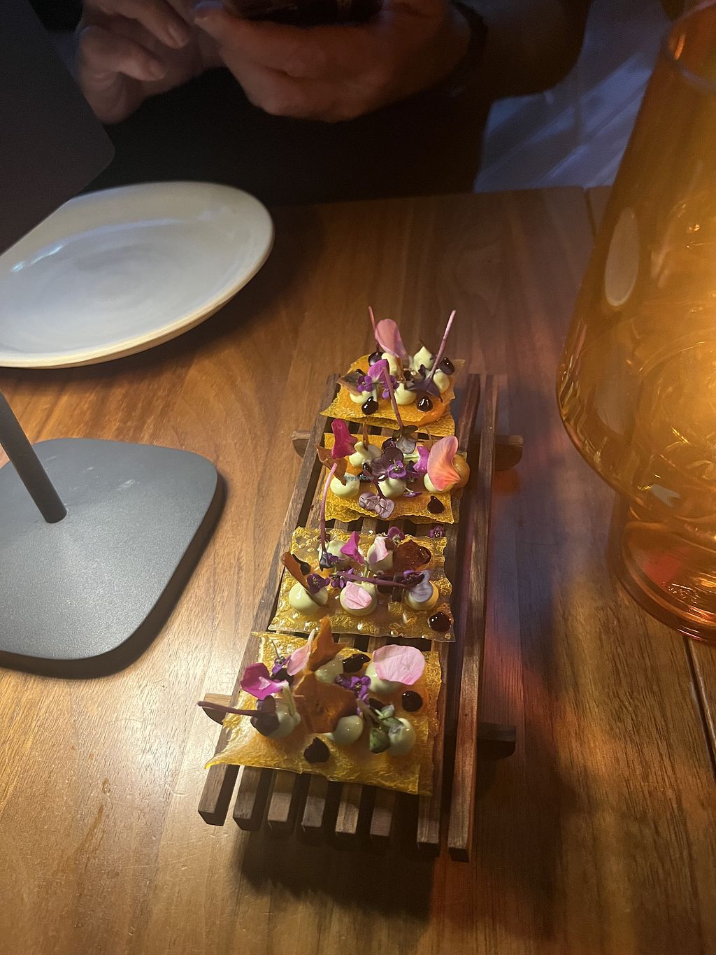 Very nice atmosphere, service started off fantastic when restaurant was empty, but dropped off considerably once it got busy (on a Wednesday night it was packed). Vegetable forward food, but for our tastes, a bit pricey for the actual food. We tried the Bao buns (my favorite), oyster mushroom tacos wirh kimchi, and artichoke with tomatoes. Tapas style allows tasting of multiple dishes. Servers describe each dish which is a nice touch, just that everything we had would not seek out again (at the prices charged). Each table has a flask of vodka that is free to drink.