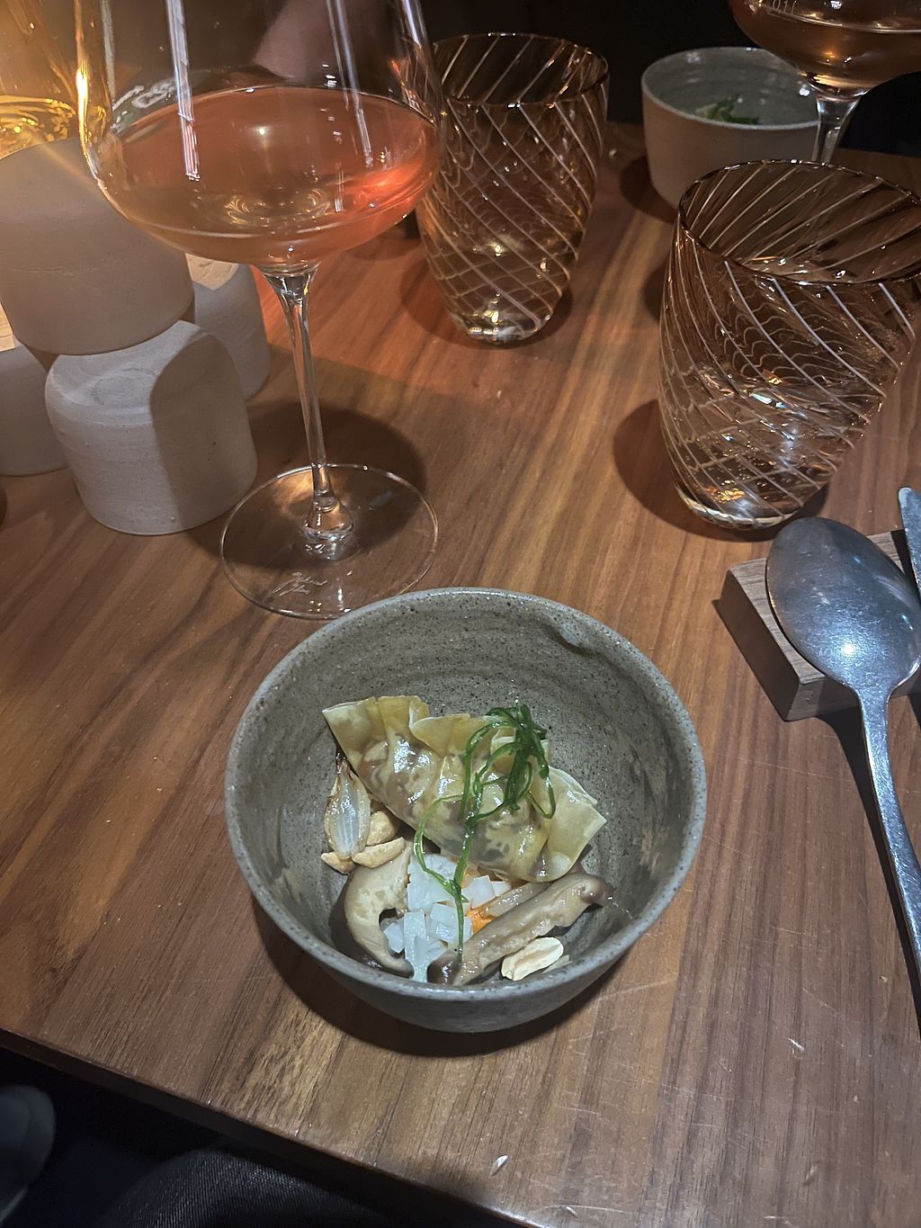 I'll start with the good: the courses were full of fresh ingredients that balanced each other well. All of the combinations were so creative and flavorful! This was my first time doing fine dining, and I was expecting the portions to be so small but for a ten course meal, they were surprisingly big and very filling! Some highlights for me were the whipped herb-y butter (so rich and creamy), the ramen bowls, the dumplings with some kind of gingery paste filling, and the chai foam with little cakes as one of the desserts. A really nice culinary experience overall.