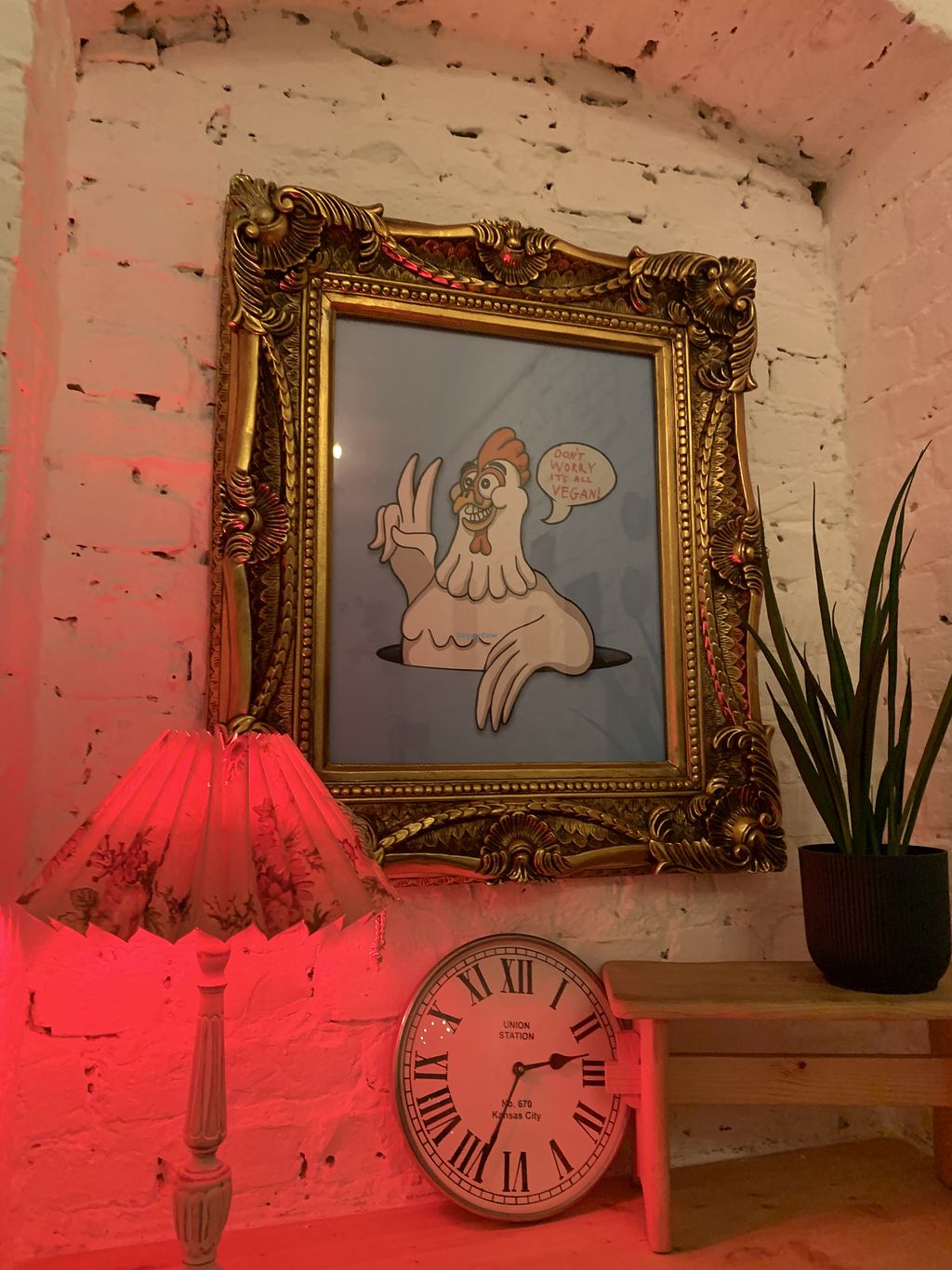 Pros: Seitan schnitzels, More than regular fries as side dishes, Cozy interior