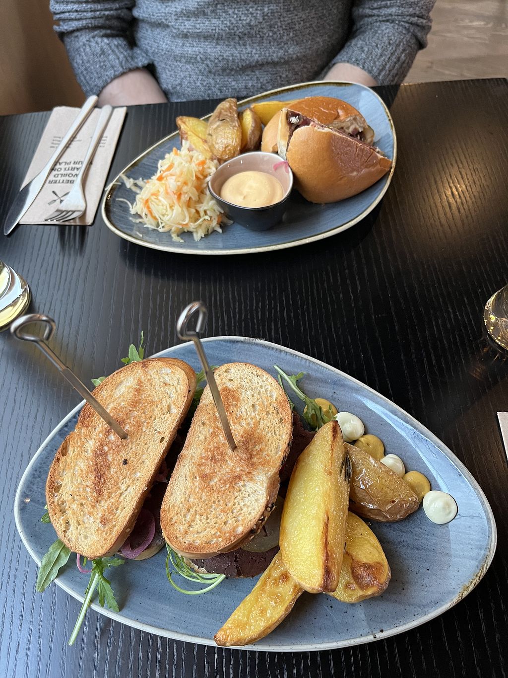 Mein absolutes Lieblingsgericht: Roastbeef Sandwich, als Beilage werden Rosmarin-Ofenkartoffeln serviert, eine Geschmacksexplosion. Tolles Ambiente, gemütlich, freundliches Personal, köstliche Kuchen.