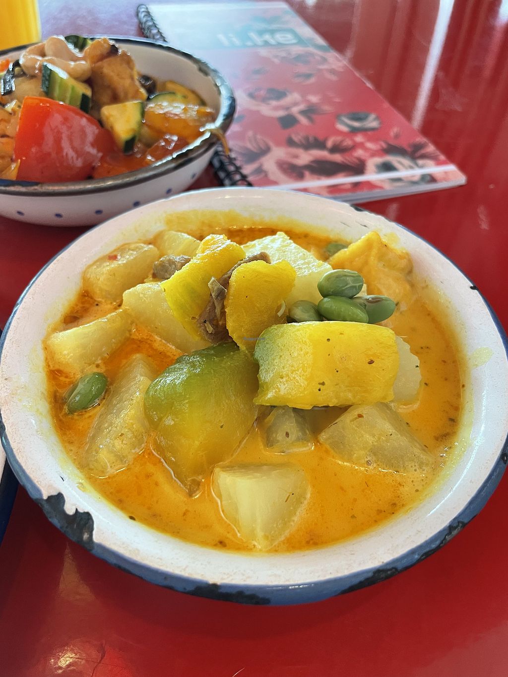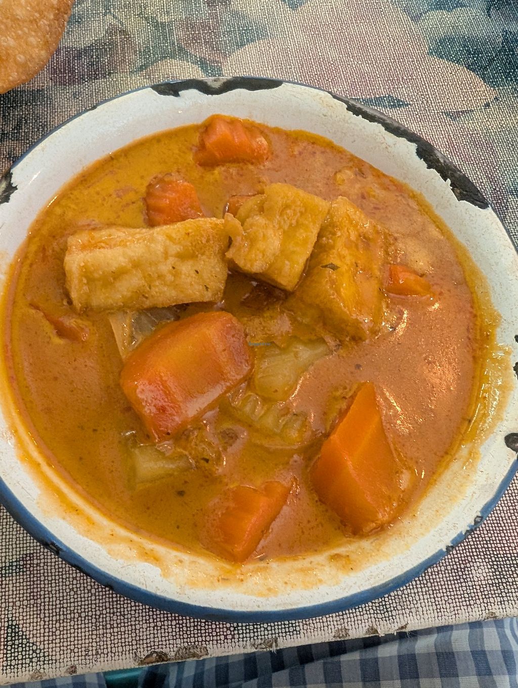 Matsaman (18) - Matsaman curry with coconut milk, carrots, tofu, jackfruit, potatoes, onions and peanuts.