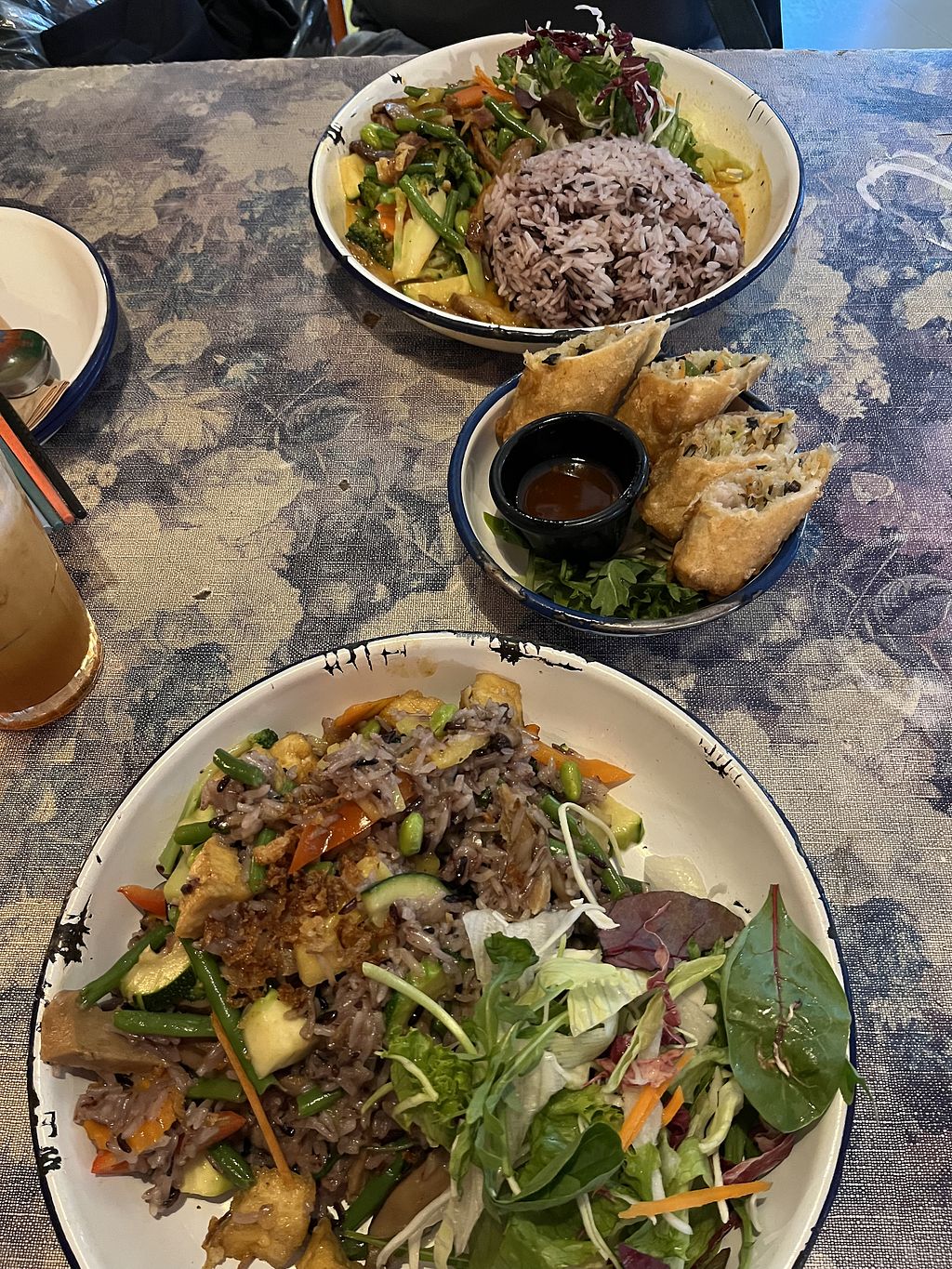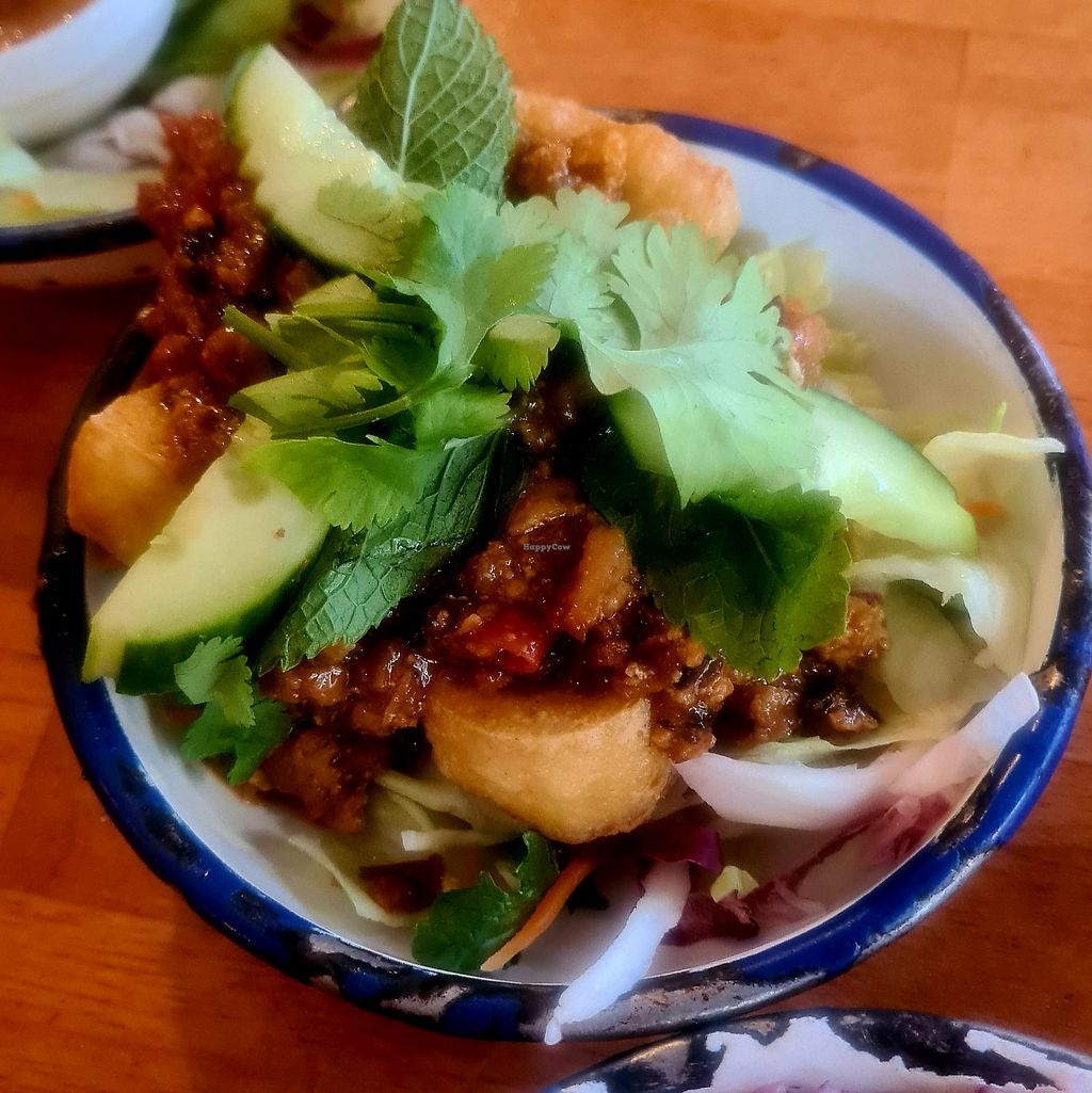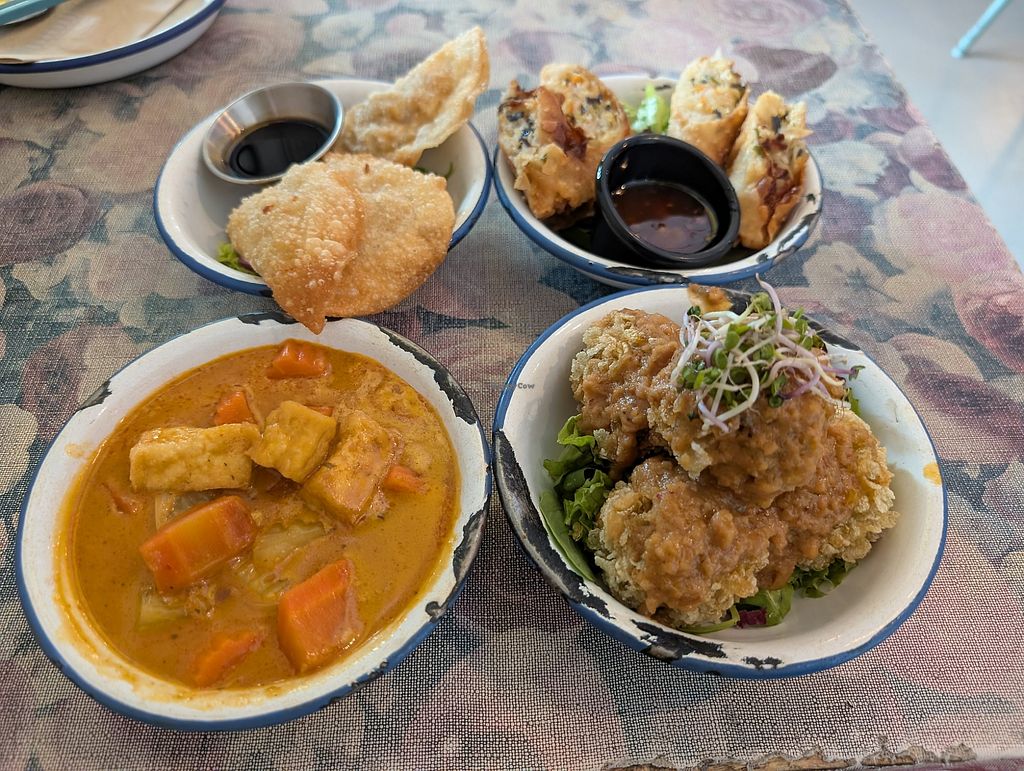 Vegan Thai restaurant opened here in 2018. Serves tapas style small dishes along with larger bowls and main dishes, including dishes from Cambodia and Laos. Example of food: pad thai, papaya salad, fried rolls, red curry, and wonton soup. Has shakes and other drinks. Companion animal friendly. Open Mon-Sun 12:00-23:00.