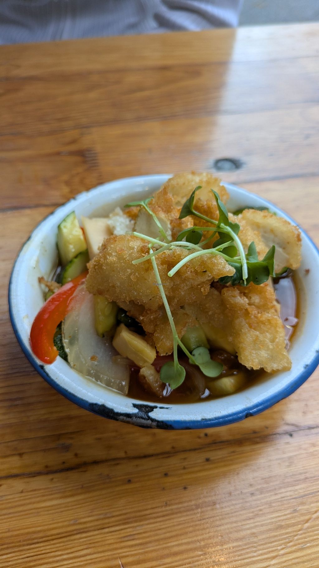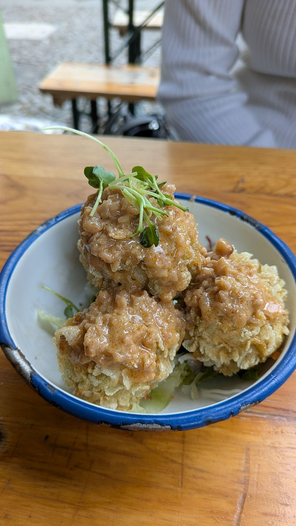 I had the tofu balls with peanut sauce as a starter, and they were an absolute 10/10. For the main dish, I had pad Thai. It was delicious and the portion was very generous, so the price felt more than fair. Just a bit on the salty side, but that’s quite typical for Southeast Asian cuisine. Would definitely recommend!