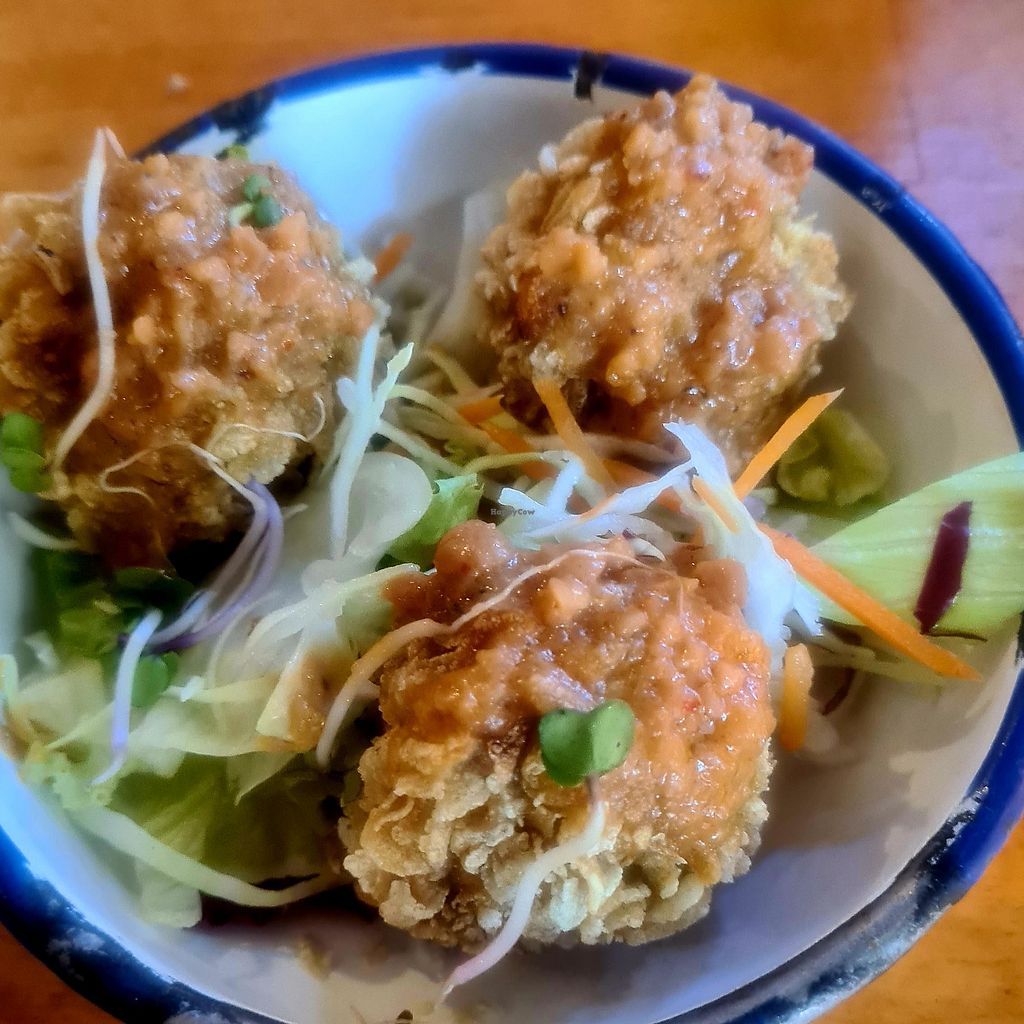 Read moreCrazy crispy (12) - Crispy fried dumplings with seitan, pumpkin, sesame and leek filling, with soy chili sauce.