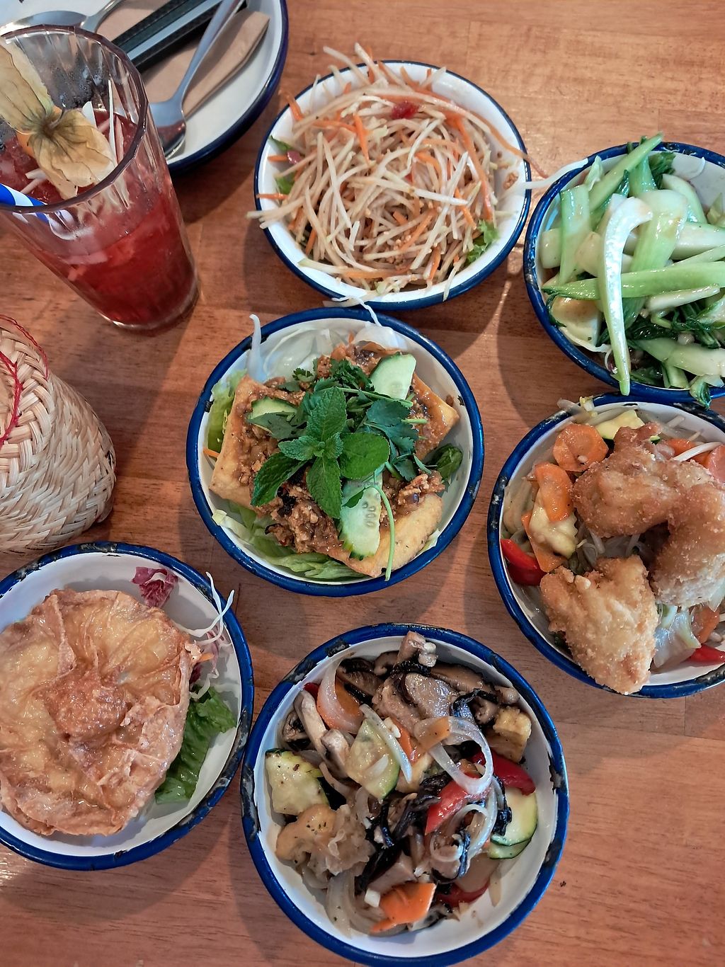 It's like a dream come true! It's fun to be able to choose several small dishes so you can try many things at once. Everything we tried was delicious, but make sure to taste at least the mushrooms with tofu and seitan, pak choi, and fried vegan shrimps. Those were our favorites! Can't wait to visit again!