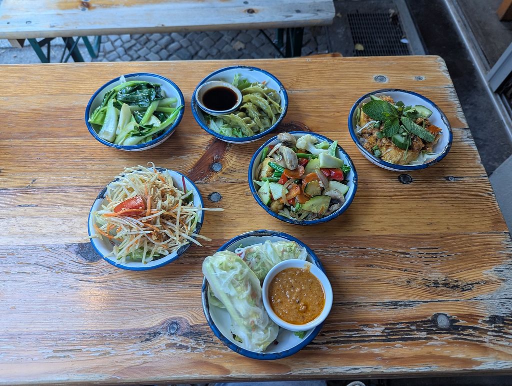 In a city with plenty of vietnamese veg restaurants (not that I'm complaining!), there are very few options for vegan Thai food. In fact Li.ke Thai is the only vegan thai place in Berlin - but thankfully, it's great one! Most of the food is served tapas style, but you can also get some very reasonably priced bigger dishes. The Phad Grapau and Panäng Curry are highly recommended. With the smaller dishes you should keep in mind that some of them are rather like a small snack - for example the dumplings - whereas the curry dishes, vegetable dishes or soups, combined with a bowl of rice, can work as small meal by itself. Not everything on the menu is absolutely stellar - the papaya salad used to be great but is now a little dull - but we never had anything there that was less than solid. We also highly commend trying the Thai Iced Tea here. Proper rocket fuel.