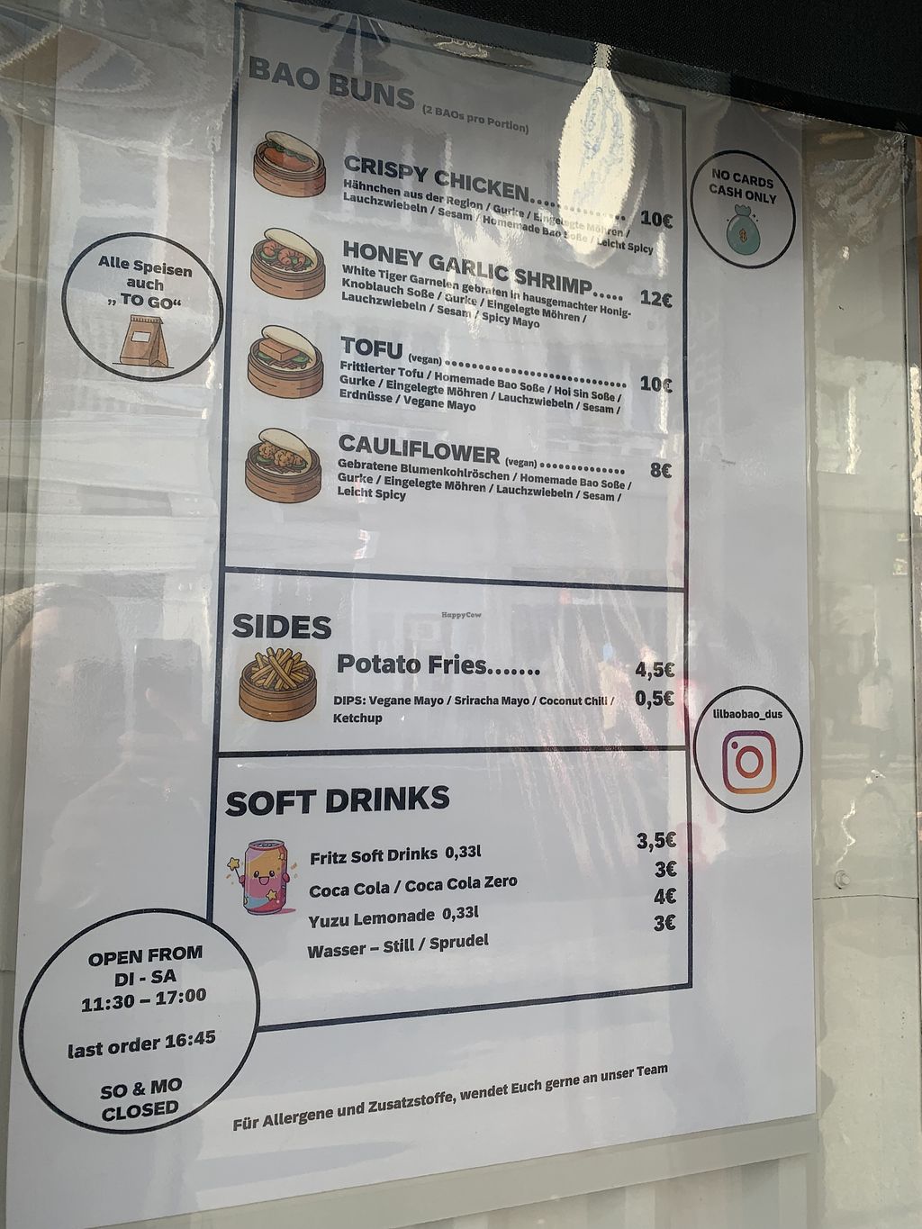 Sehr gute Bao Buns. Etwas teurer und mit einer Wartezeit verbunden, dennoch wirklich wert.
