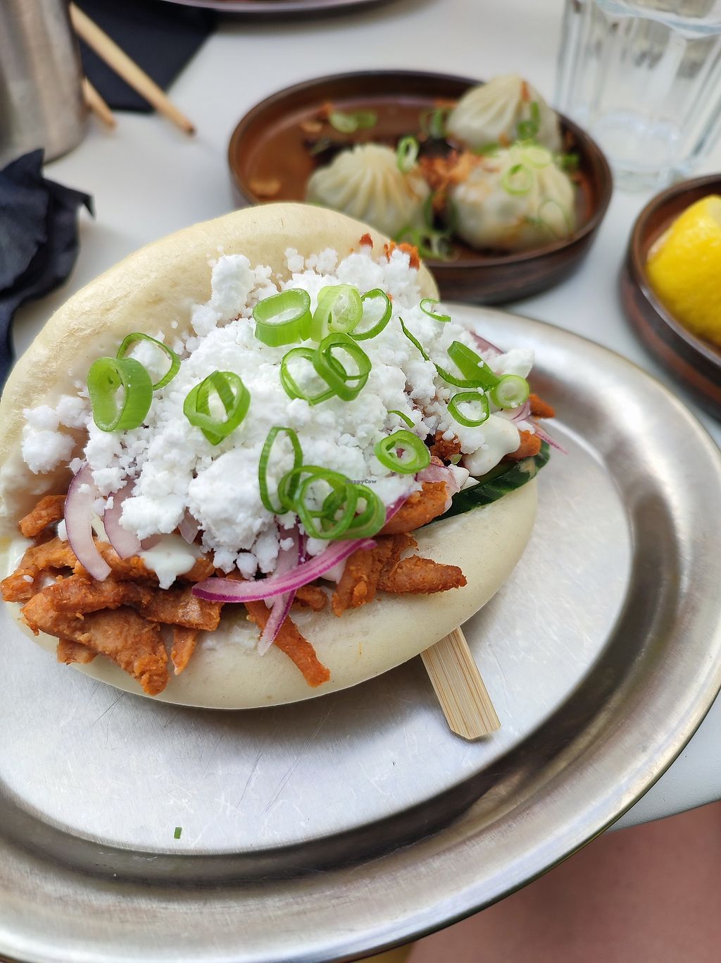 delicious fluffy bao with crispy protein. also tried the dim sum which was perfectly soft and chewy. extremely good, on the high end of price but worth it for sure