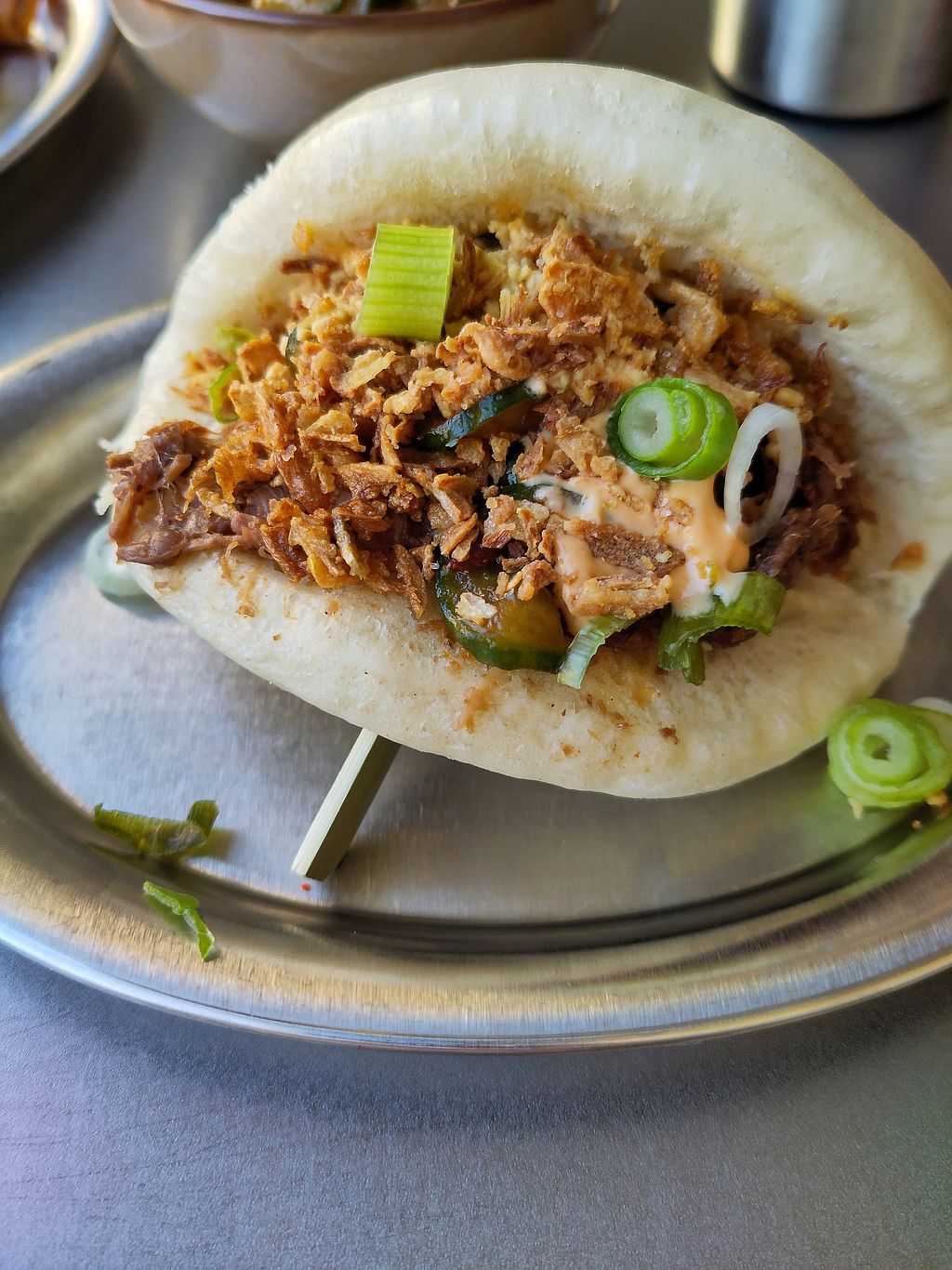 I took the Bao with jackfruit and spicy sauce alongside a spring rolls and dims. The taste and the texture were both great!