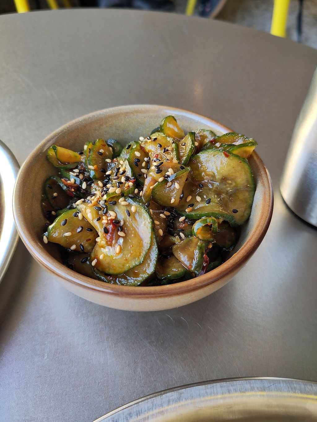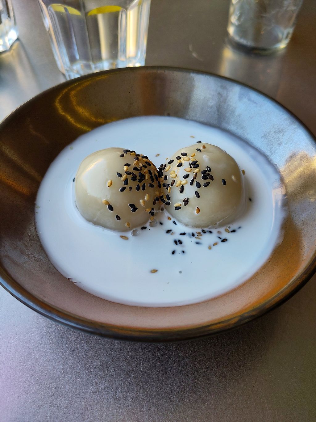 This place has a second level (roof terrace), which is nice. The container walls inside were not so nice to lean against. We had a bowl, dumplings and a Bao with vish. Everything was good. I liked the dessert best even though it was difficult to eat and a spoon would have been better with it.