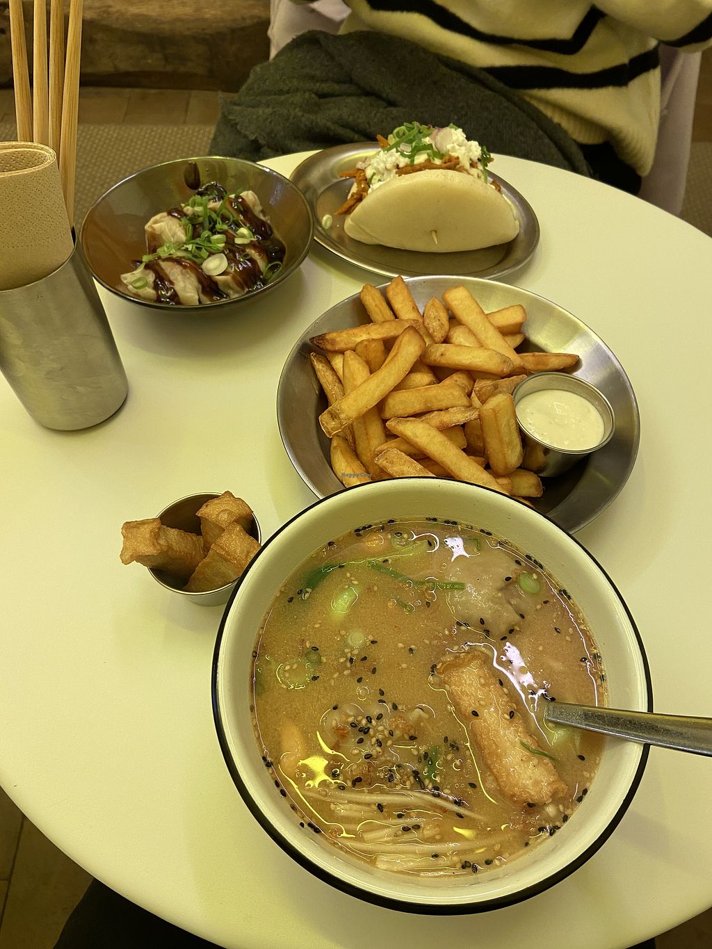 The vibe, the food, the service! The aubergine bao was amazing and the miso soup so energising!