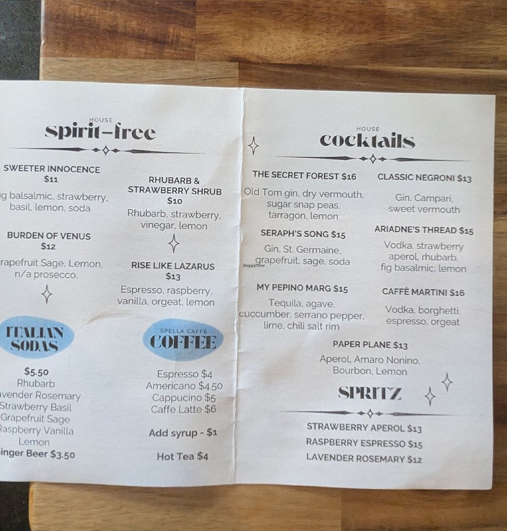 Come for the pastas and no tipping culture, keep coming back for the food and drinks. Amazing zero proof mocktails.