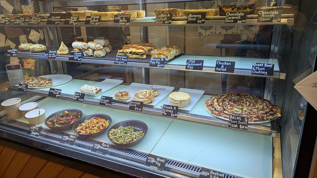 Serves meat, vegan options available. Cafe offering a few vegan items such as vegan cheese scones, pies, vegan sausage rolls, wraps and sandwiches. Sauces, salad dressings, mayo and aioli are vegan unless specified otherwise. Open Mon-Fri 7:00am-3:00pm. Closed Sat-Sun.