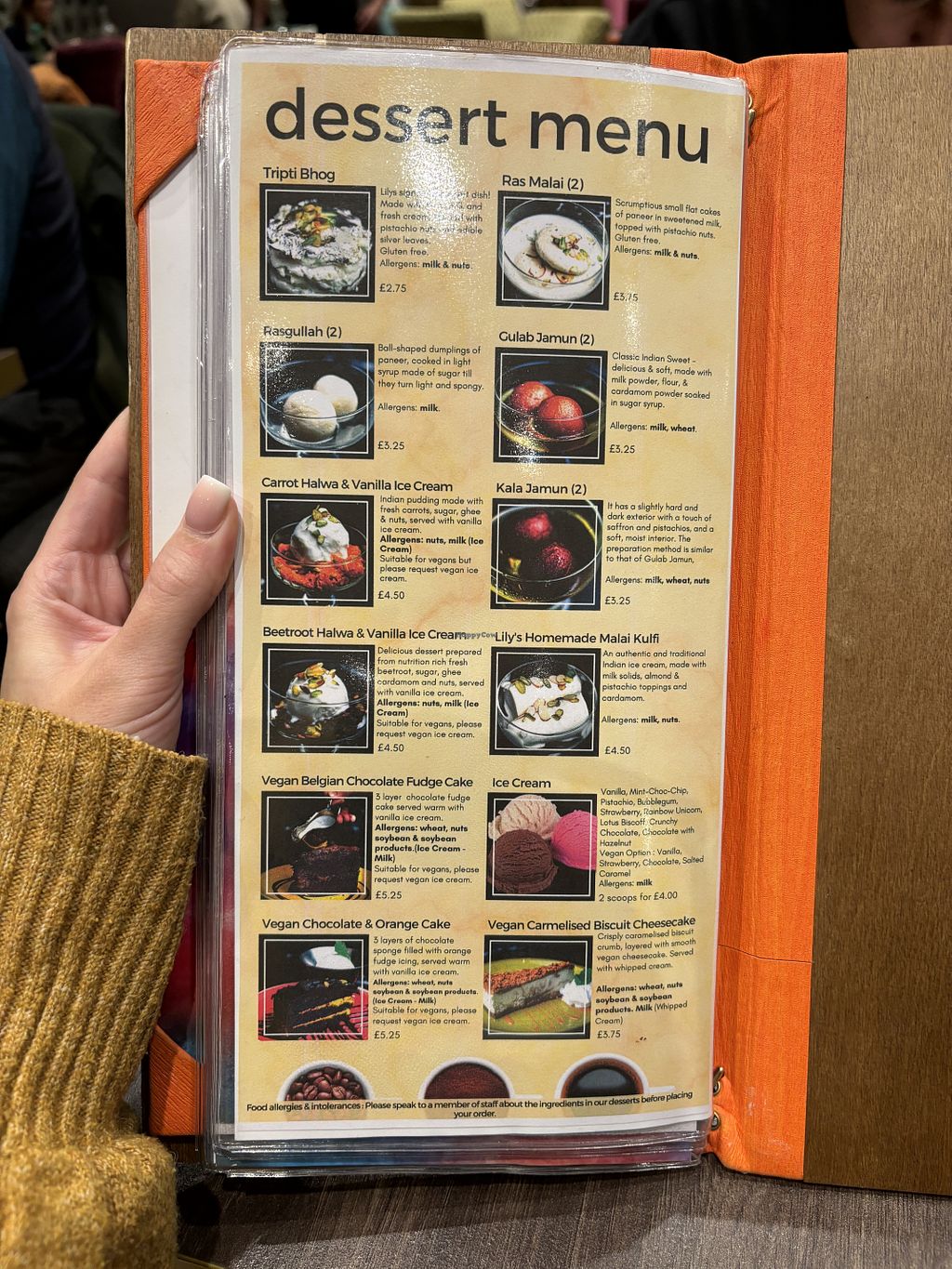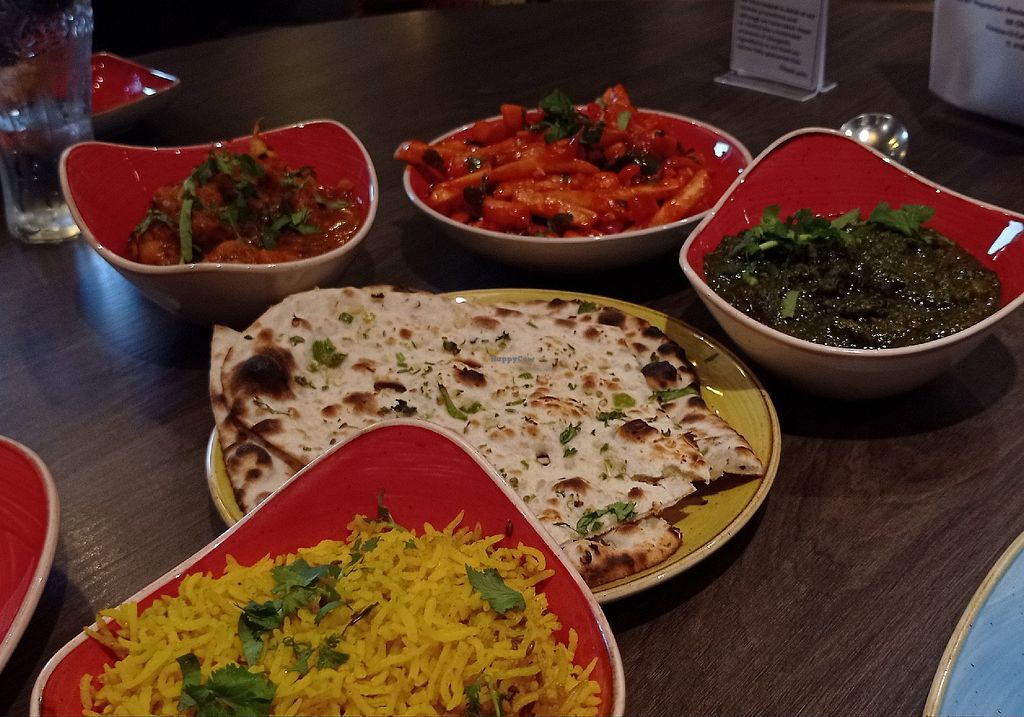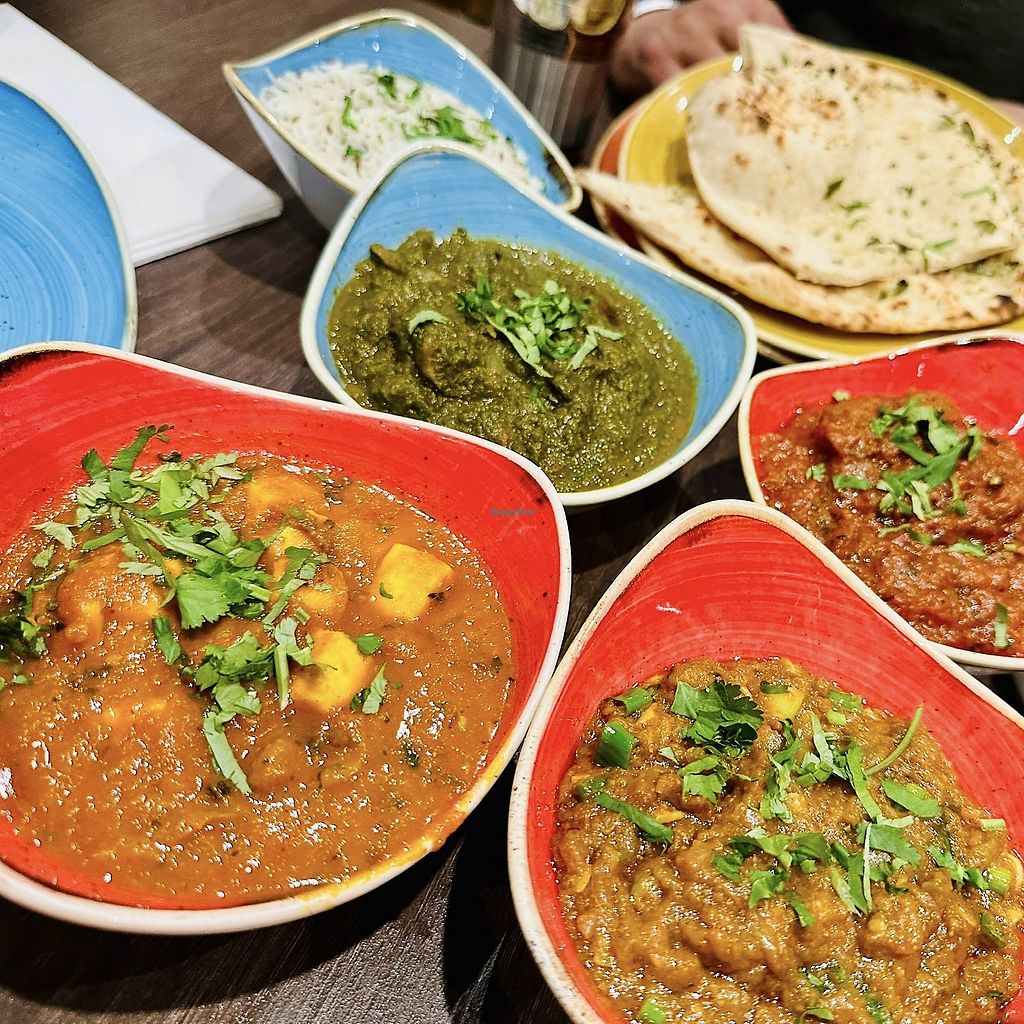 Plenty of vegan options! We started with poppadoms and a variety of dips, including a delicious vegan mint yogurt sauce. The onion bhajis and vegetable samosas were fantastic appetisers. For our mains, I had the flavorful dal, and my boyfriend enjoyed a hearty chickpea curry. Although we were too full to try dessert, they had a great selection of vegan sweets. I would highly recommend this place to anyone looking for tasty vegan cuisine. 💚