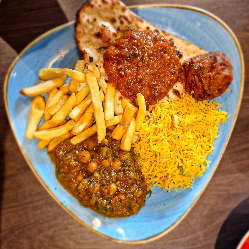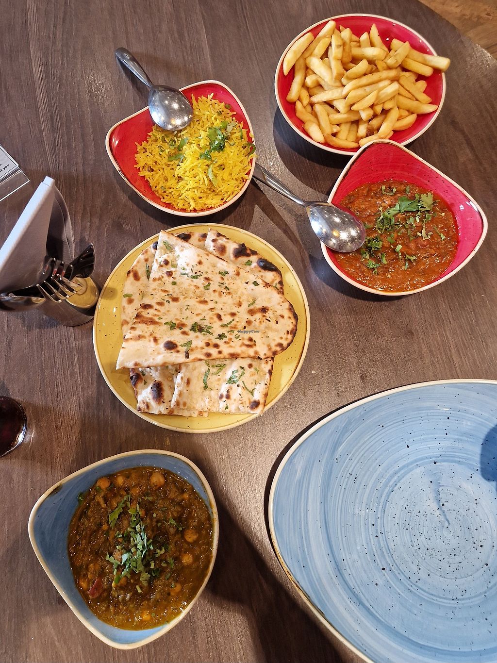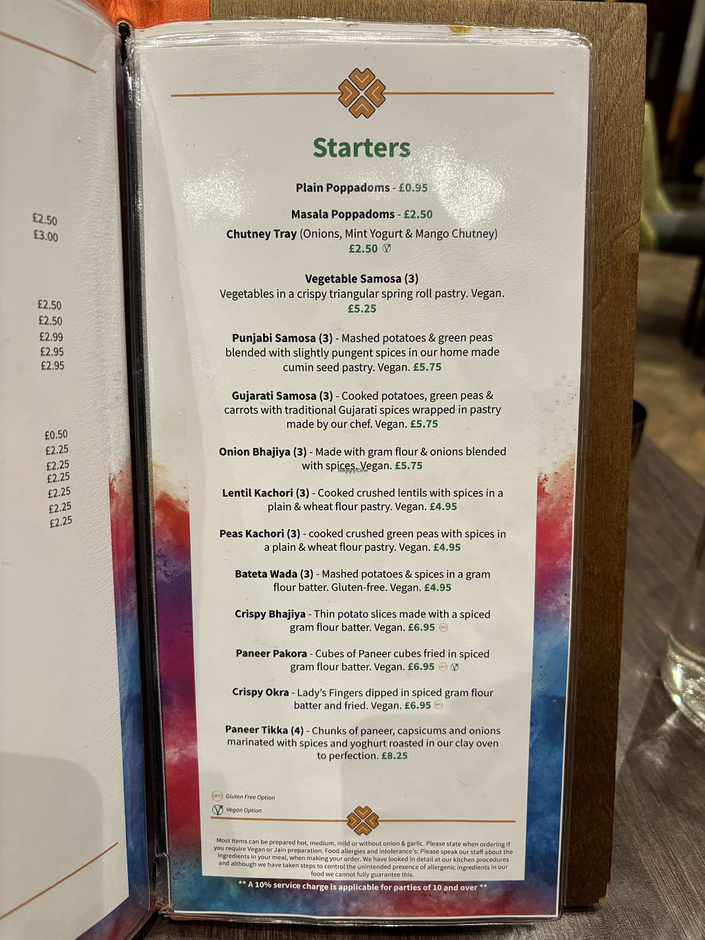 Plenty of vegan options! We started with poppadoms and a variety of dips, including a delicious vegan mint yogurt sauce. The onion bhajis and vegetable samosas were fantastic appetisers. For our mains, I had the flavorful dal, and my boyfriend enjoyed a hearty chickpea curry. Although we were too full to try dessert, they had a great selection of vegan sweets. I would highly recommend this place to anyone looking for tasty vegan cuisine. 💚