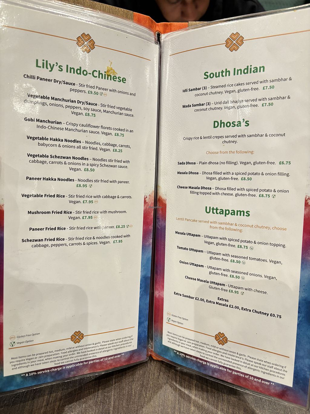 We’ve been going to Lily’s for years since they were a small cafe, lovely to see they have continued to grow and now have a restaurant. We still continue to always get the vegan Lily’s sizzler (the Manchurian is great!) and love the samosas and curries. Most food is available as vegan or a vegan option. A little disappointed this time as they were the only Indian to serve vegan mango lassi and no longer do that. Otherwise, great food, service was ok, quite pricey these days.