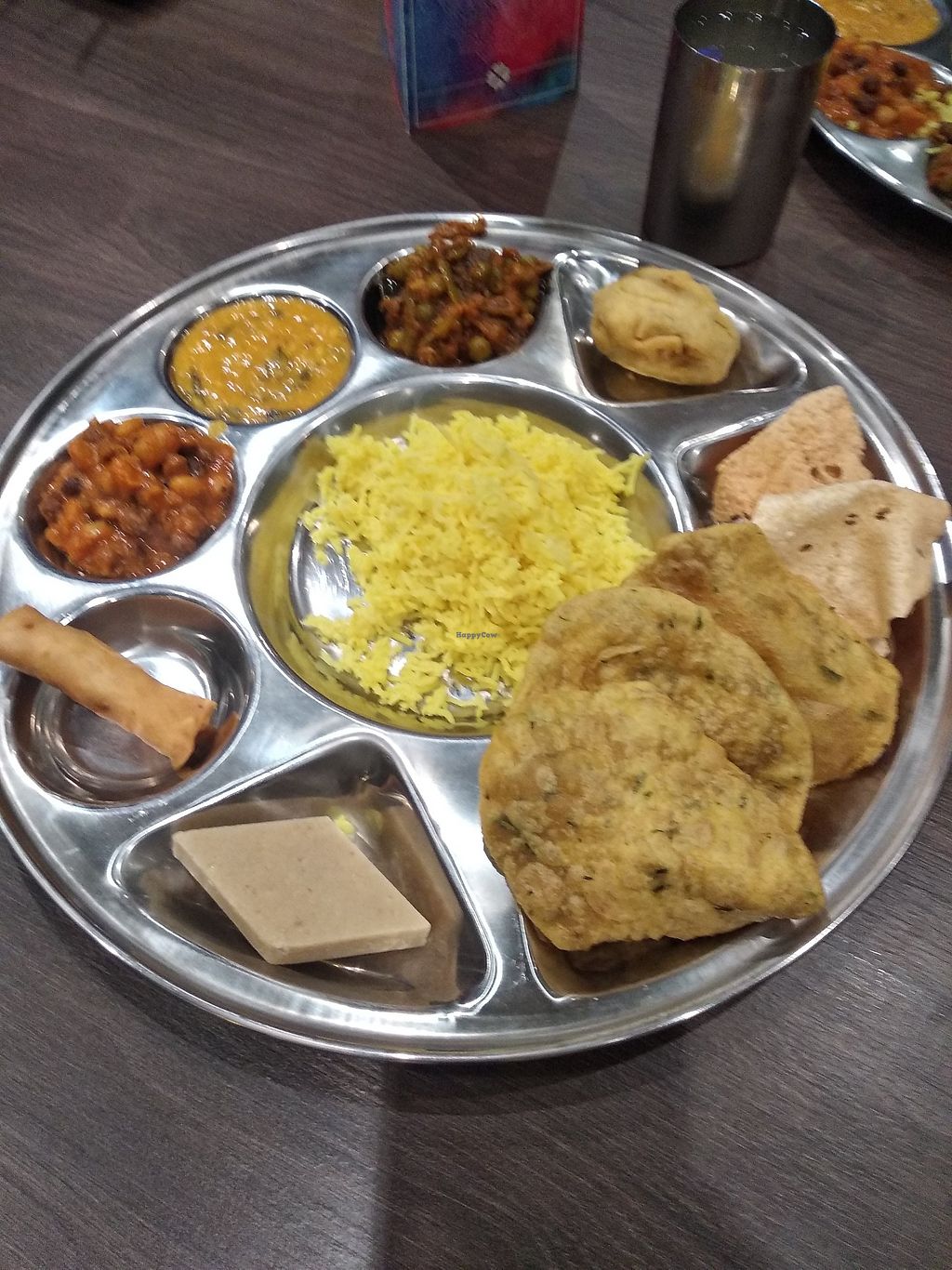 Gujurati Indian food and sweets restaurant, a 5-minute walk from Ashton under Lyne train station. Large menu includes some Indo-Chinese dishes. Vegan items are marked. Last order 60 minutes before closing. Moved into larger next-door premises Jan 2019. Open Wed-Thu 12:00-20:00, Fri-Sat 12:00-21:00, Sun 12:00-16:30. Closed Mon-Tue.