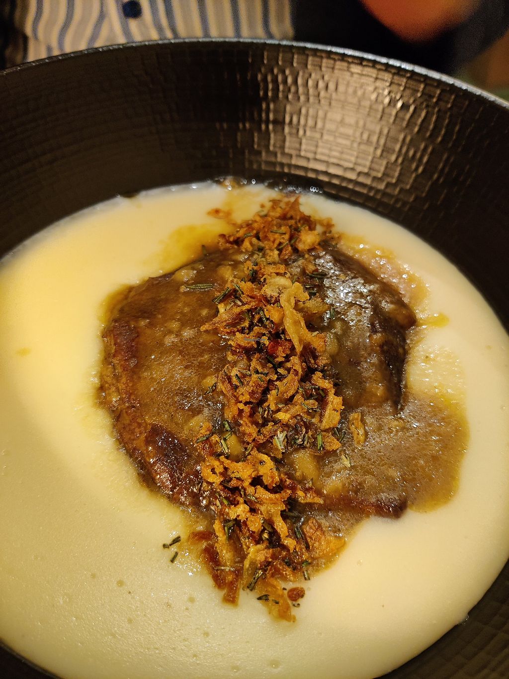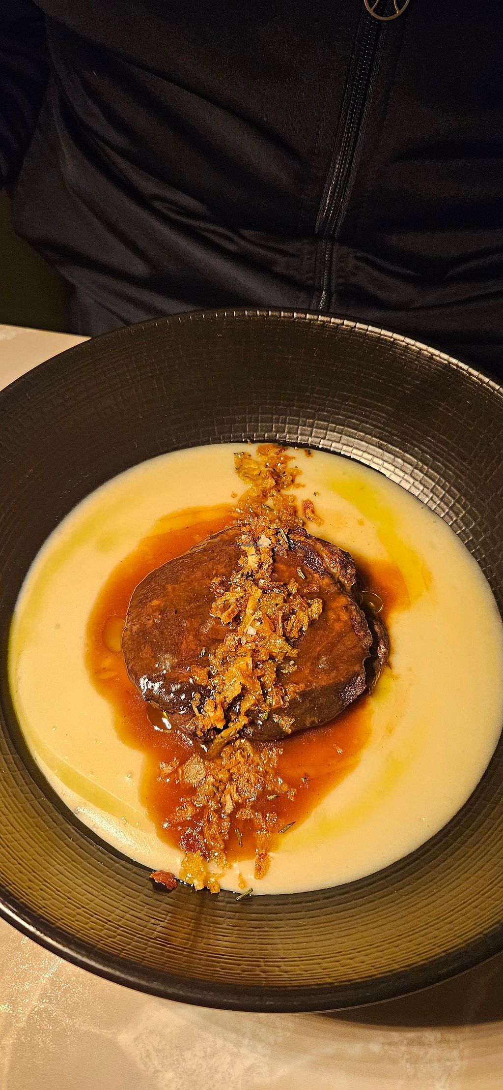 I had an amazing meal here! My only disappointment was that the restaurant was so empty - it’s such a huge, beautiful space, I would love to see it on a more lively evening. I had the caprese (interesting variation on a classic), truffle steak, and apricot & pecan sablé. All were outstanding, especially the steak. Not cheap, but high quality.
