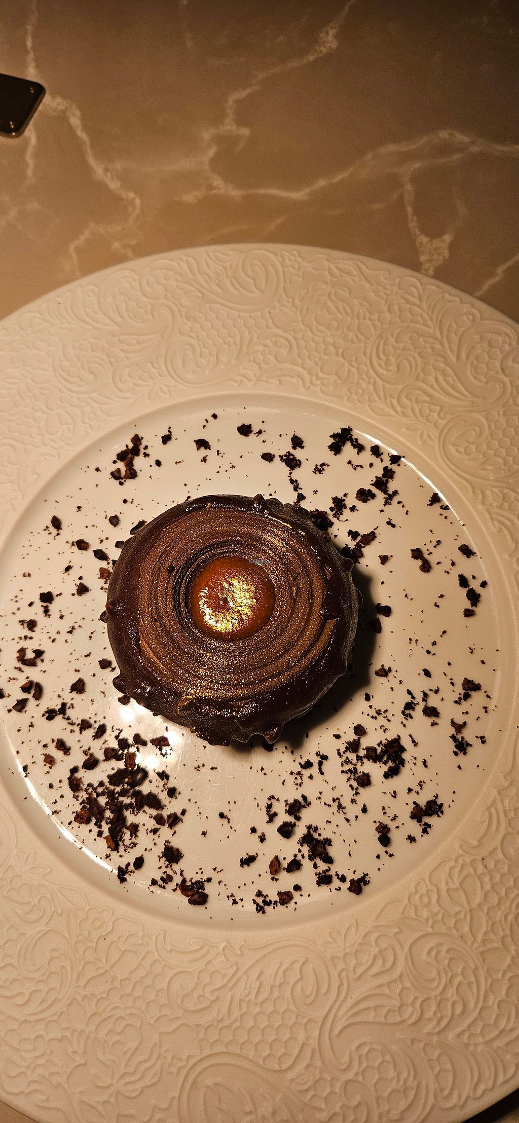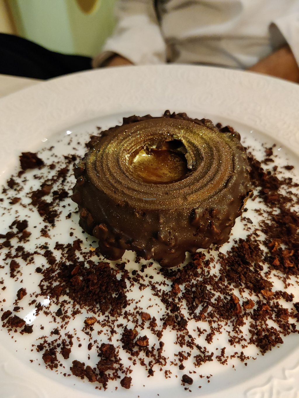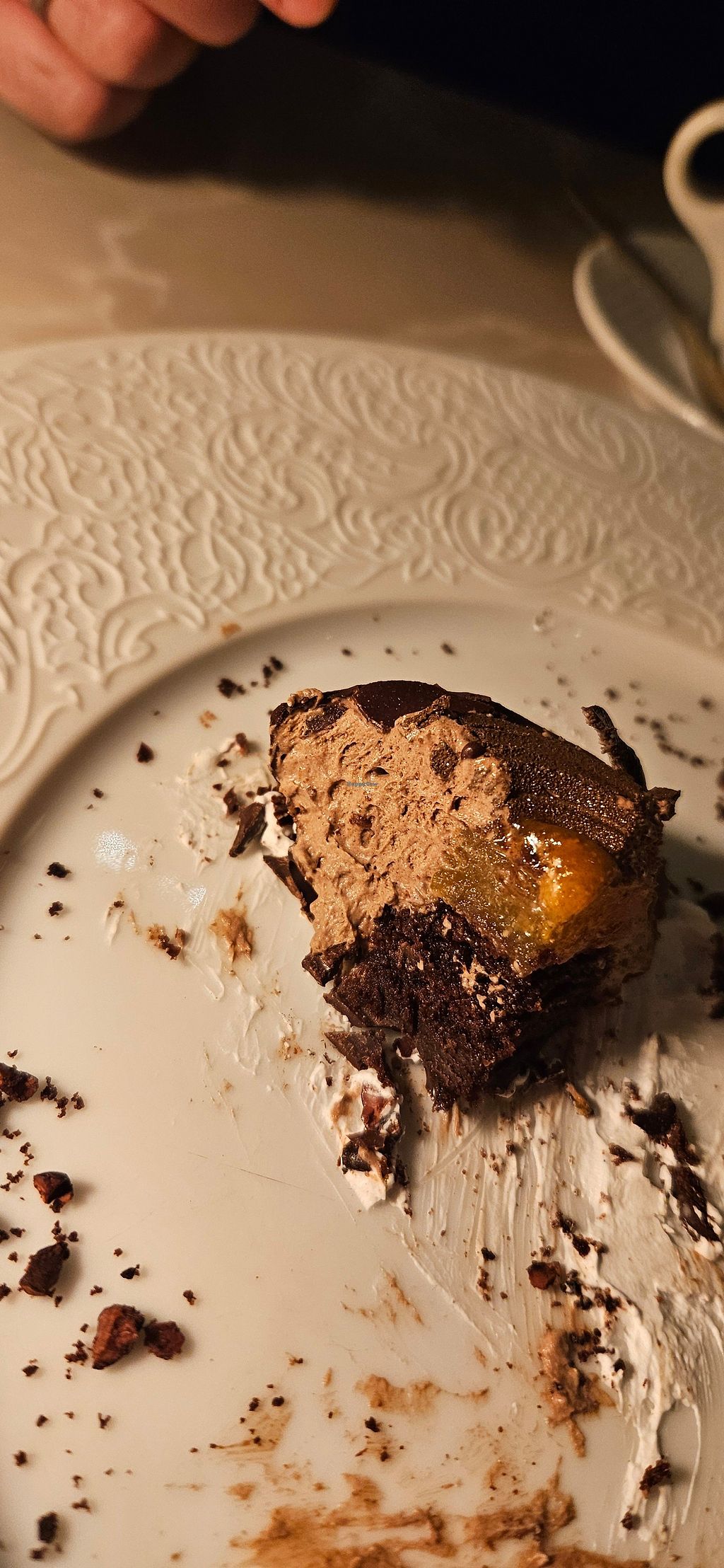 The dessert was pure poetry: the combination of the chocolate mousse, the passion fruit jelly, the chocolate cake, and the cacao nibs — the perfect harmony of flavors and textures.