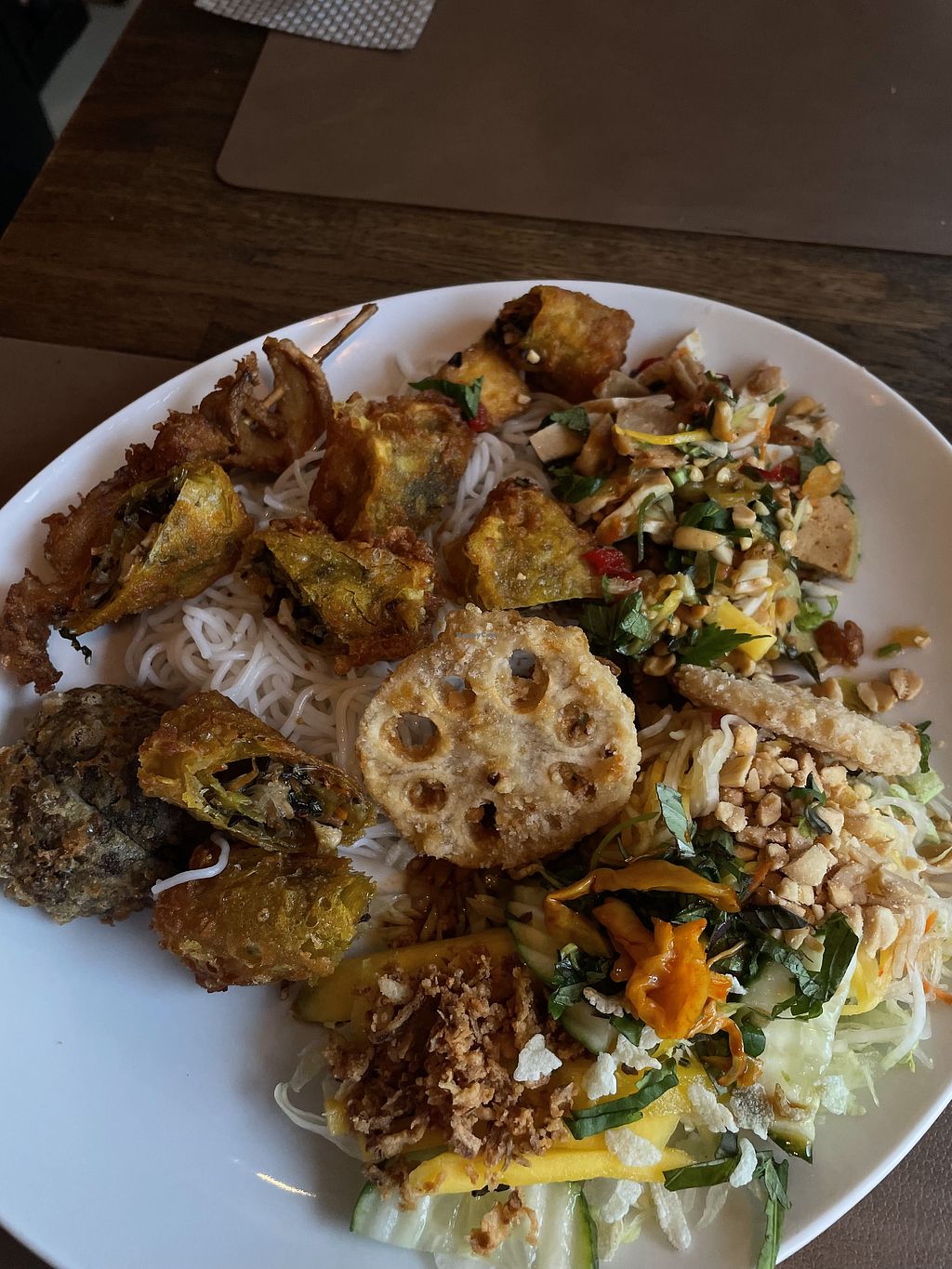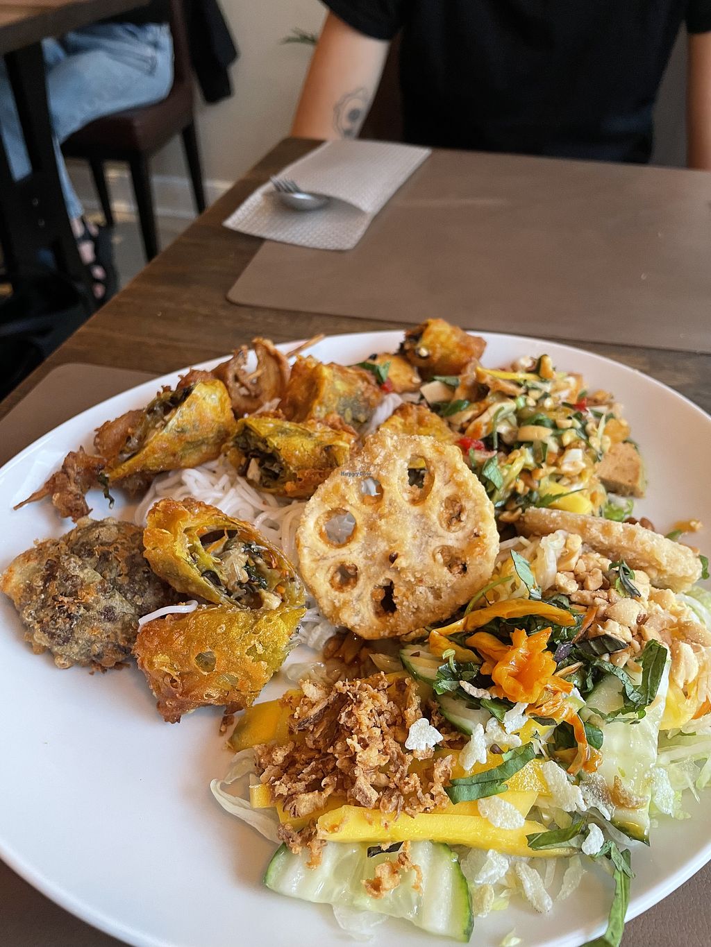 This Vietnamese restaurant has lots of vegan options listed in a separate section of the menu. they’re all delicious! Some are rather unusual and have some very unfamiliar flavors - but that’s great - since it makes you feel like you really experience some authentic Vietnamese food. Many dishes, such as summer rolls can also be made vegan by swapping the chicken in it for tofu. Just ask the staff, they know what vegan means! Always a pleasure to come here