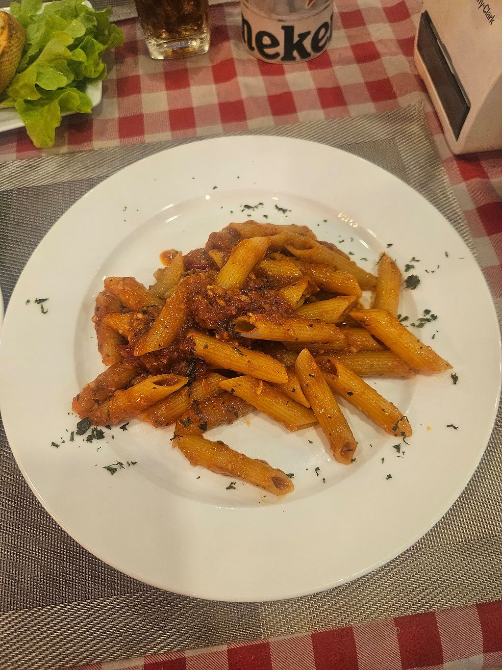 I had tomato pasta. It was very spicy, but they change it sweety tomato pasta, and I had tea in breakfast.
