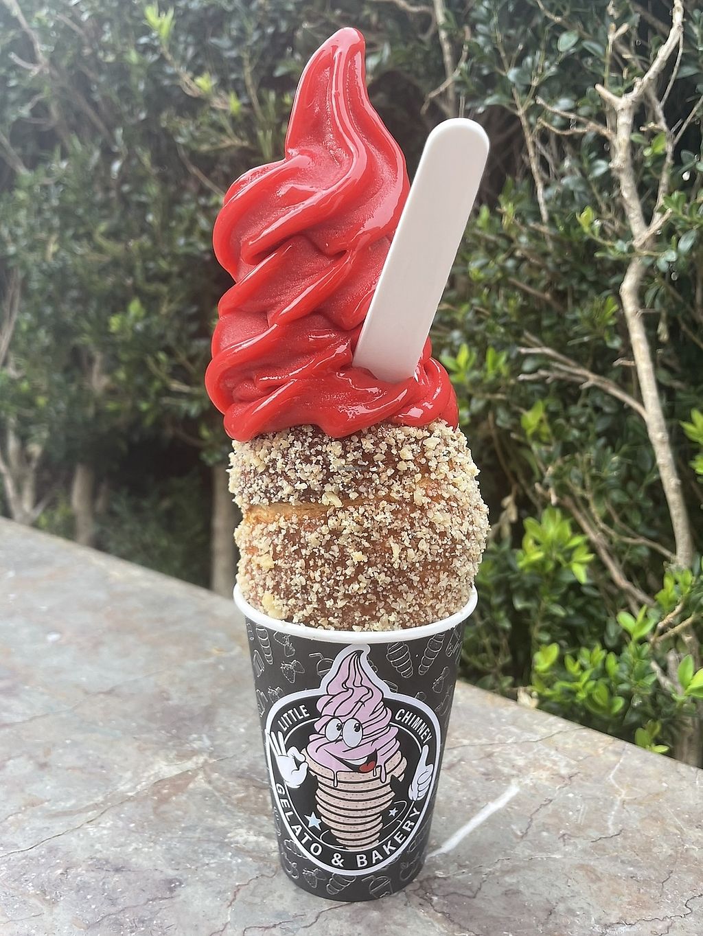 Note that this place is under a new name - Little Chimney. They had two vegan gelato options - raspberry and dalgona. I had the raspberry in a chimney cone and it was quite good!
