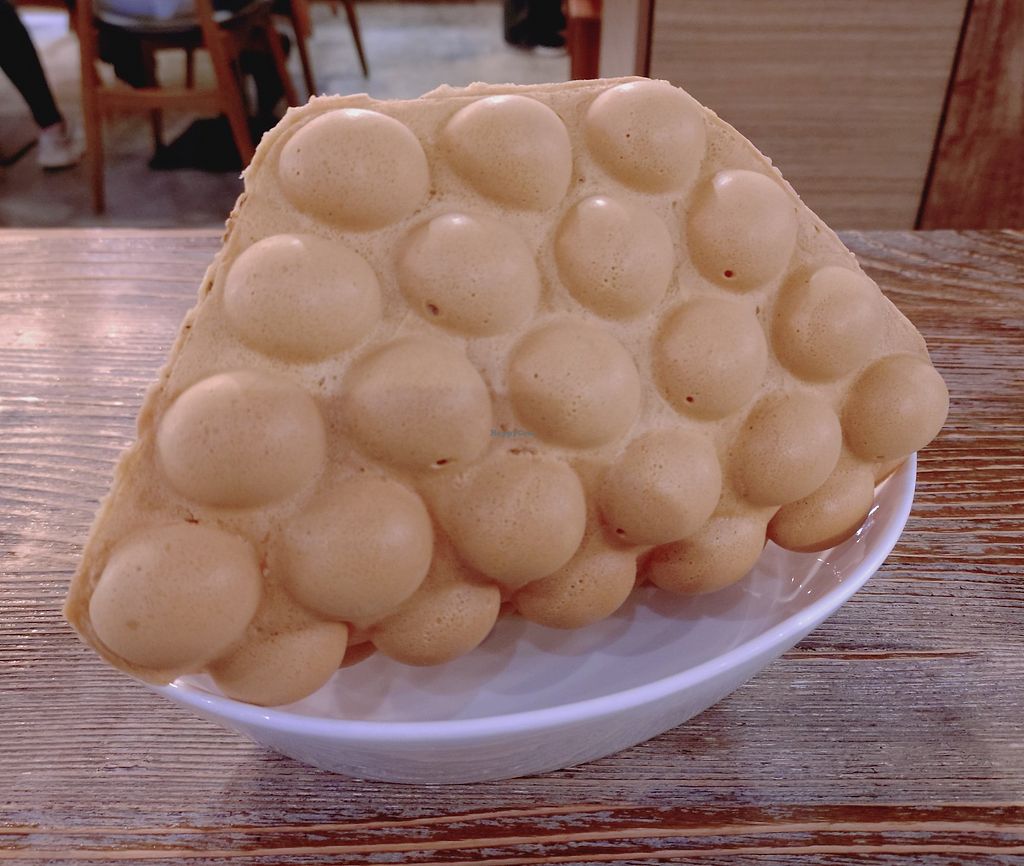 Was in Hong Kong and knew I wanted to check this place out. Already had lunch plans but stopped in to have tea. The toast was the closest thing I could find to a chachaanting and of course you can't go to Hong Kong and not try the egg waffles. They helpfully let me know right away that the juice wasn't fresh, after asking further she let me know it was out of the box but it was 100% juice. It was a great vegan place to visit to take a break from the bustling city.