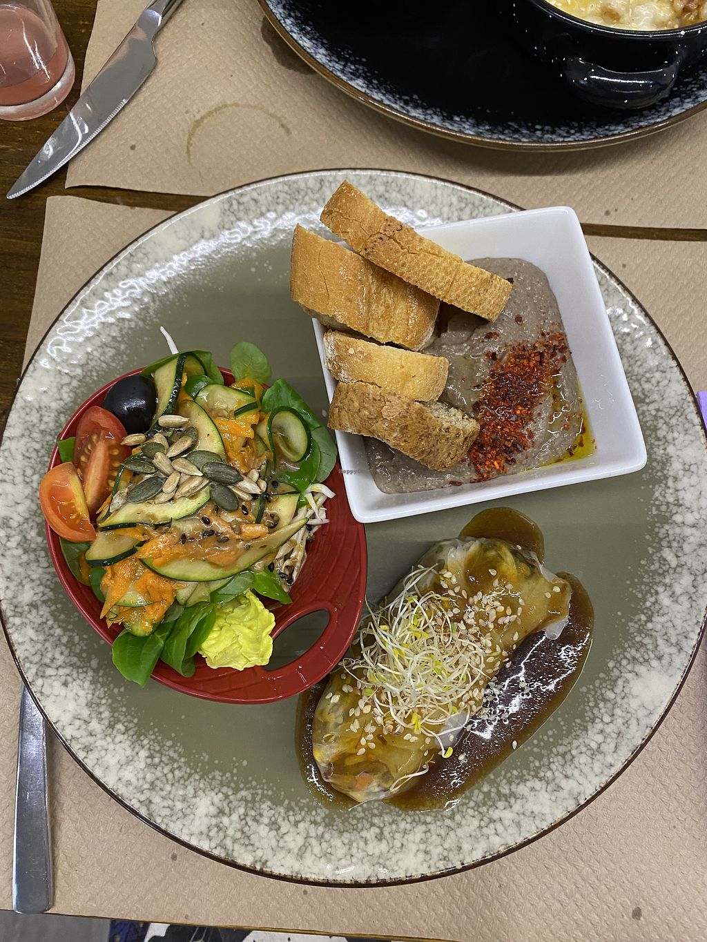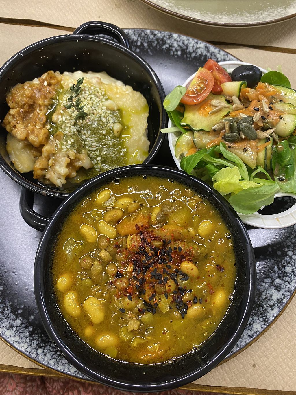 - Gazpacho de sandía - pastel de quinoa-estofado garbanzos-ensalada te…