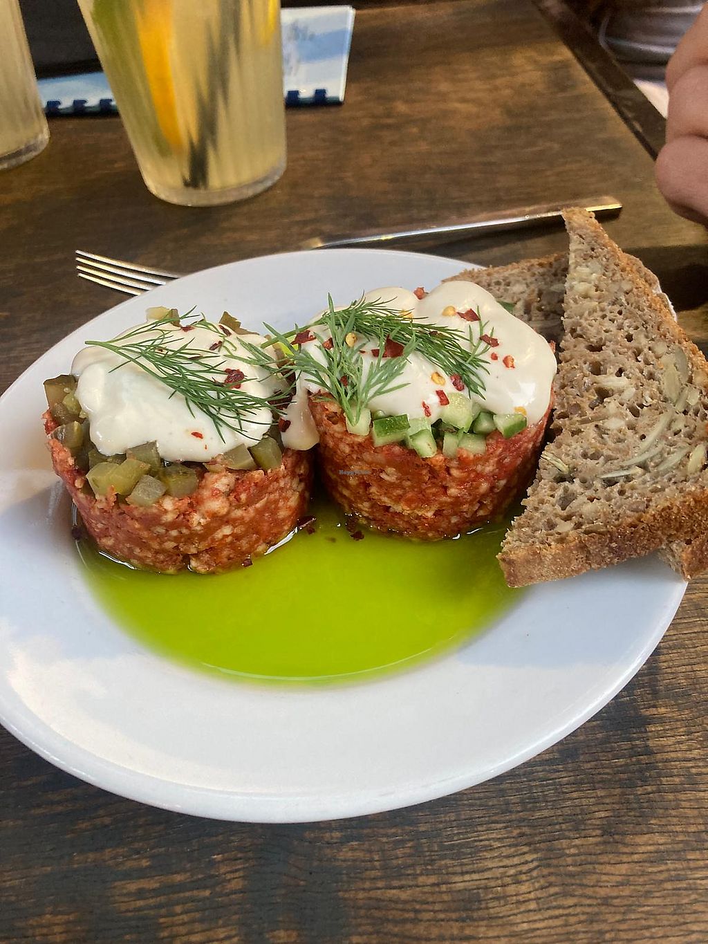 Read moreThe steak tartare was amazing, the seitan steak was impressive and tasty, and the soy cutlet (pushed by our Polish friend as one of the most typical Polish things to try) was great. But especially the potatoes, cucumber salad, beans and sauces that came with the fake meats were wonderful.