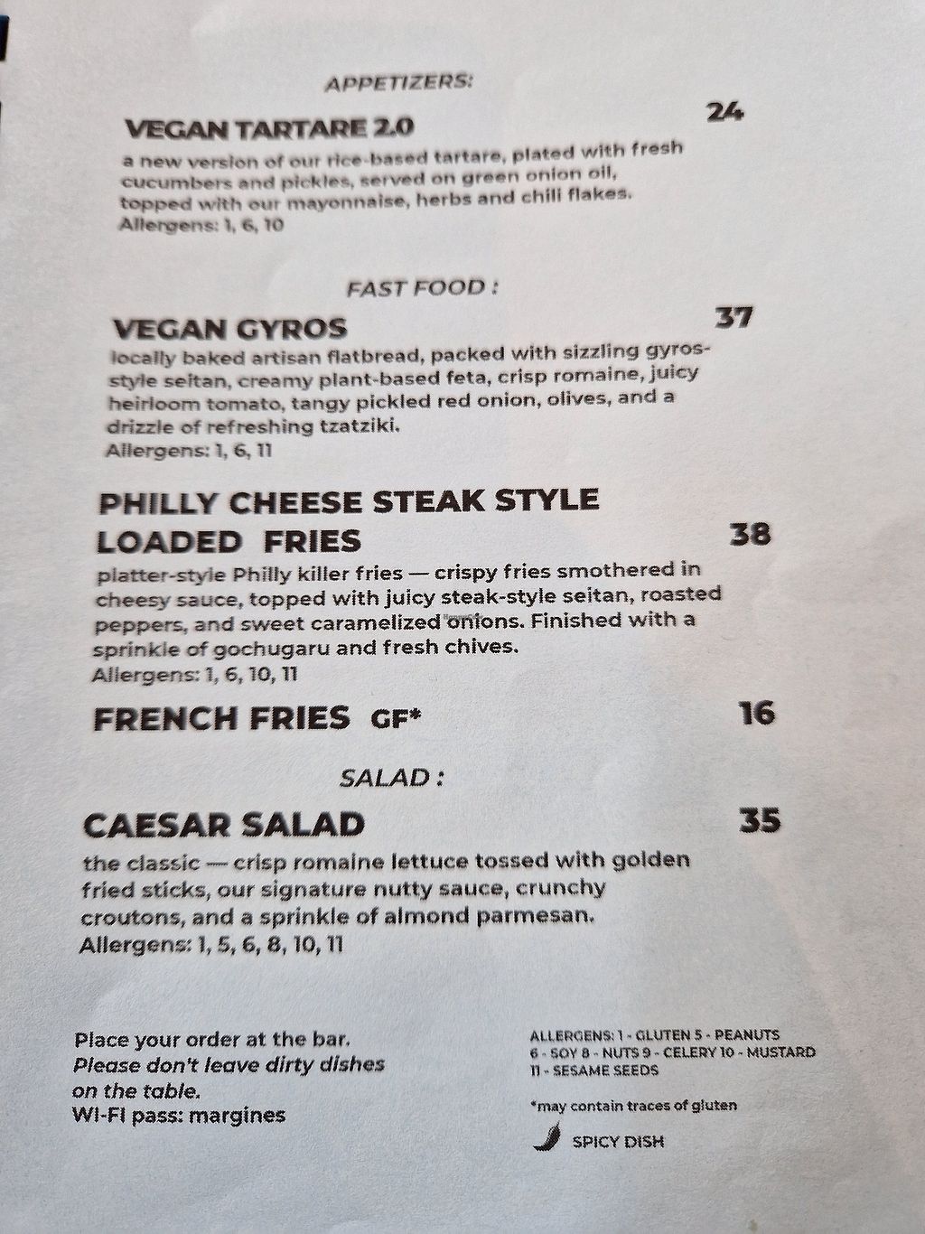Really cool place with a small menu. Looks like they do it reallh weel. Good value for money. Had the gyro and fries. Really good seitan kebab pieces.