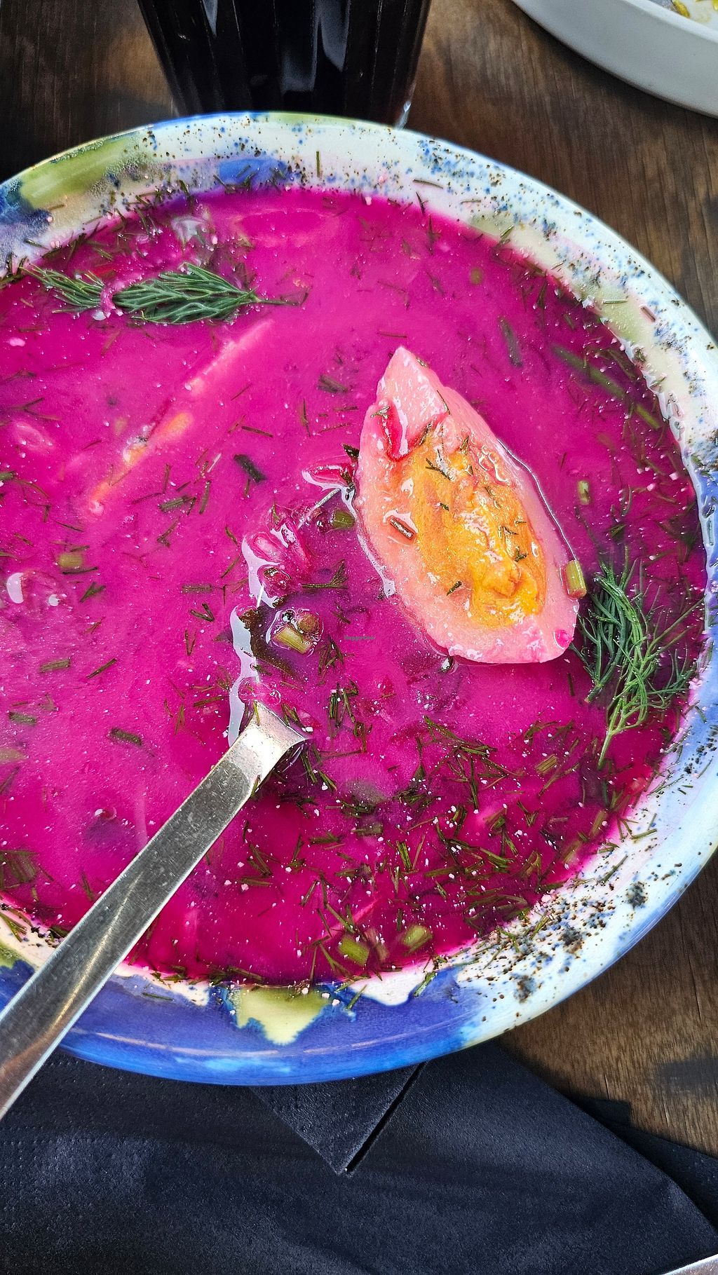 The Food was delicious. The best was the Spaghetti Carbonara. Sooo yummy, 100points! What i didn't like so much was the cold beeteoot soup. It was a bit watery and not flavoury enough, i ate better ones in other places. Also the cucumber salad was very simple and could have been more seasoned. It's not a cosy restaurant but a bistro. So it's really basic seats and tables and you return your dirty plates youself to the counter. All in all very good, but only the 2nd best that i tried in Warsaw.