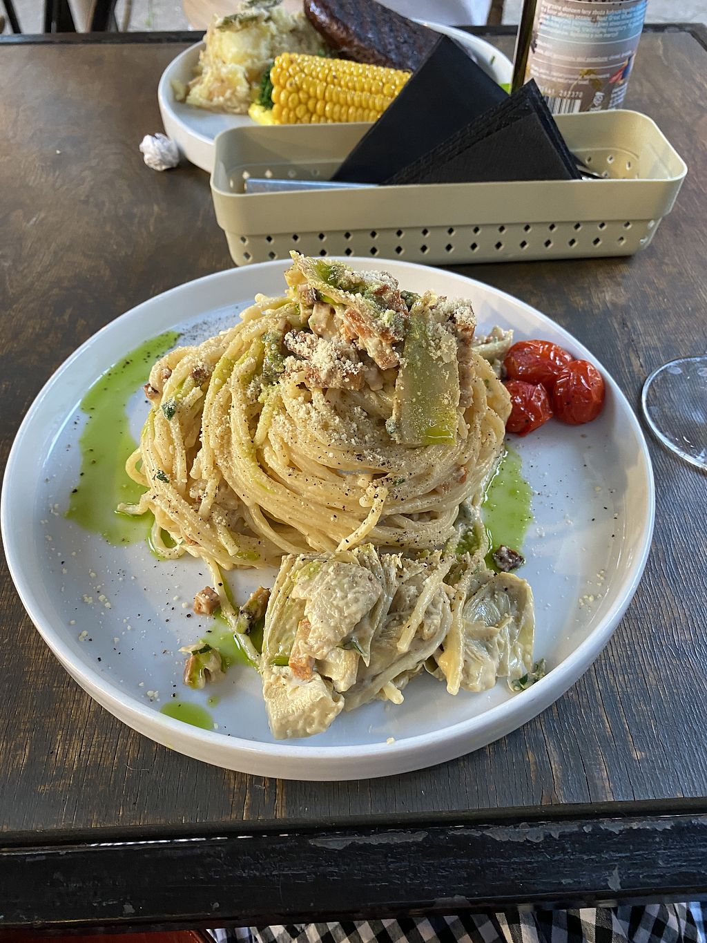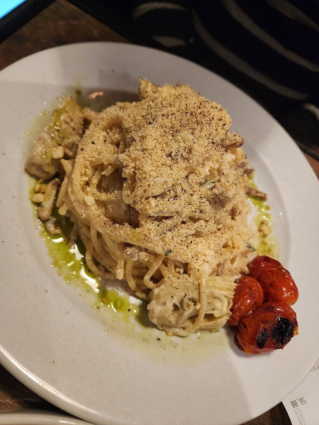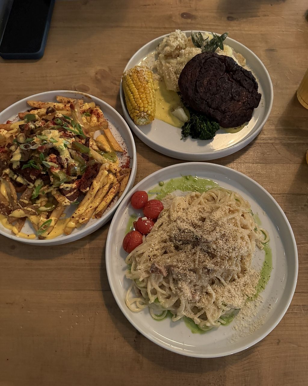 We had the vegan steak, carbonara, an loaded fries, really nice food.