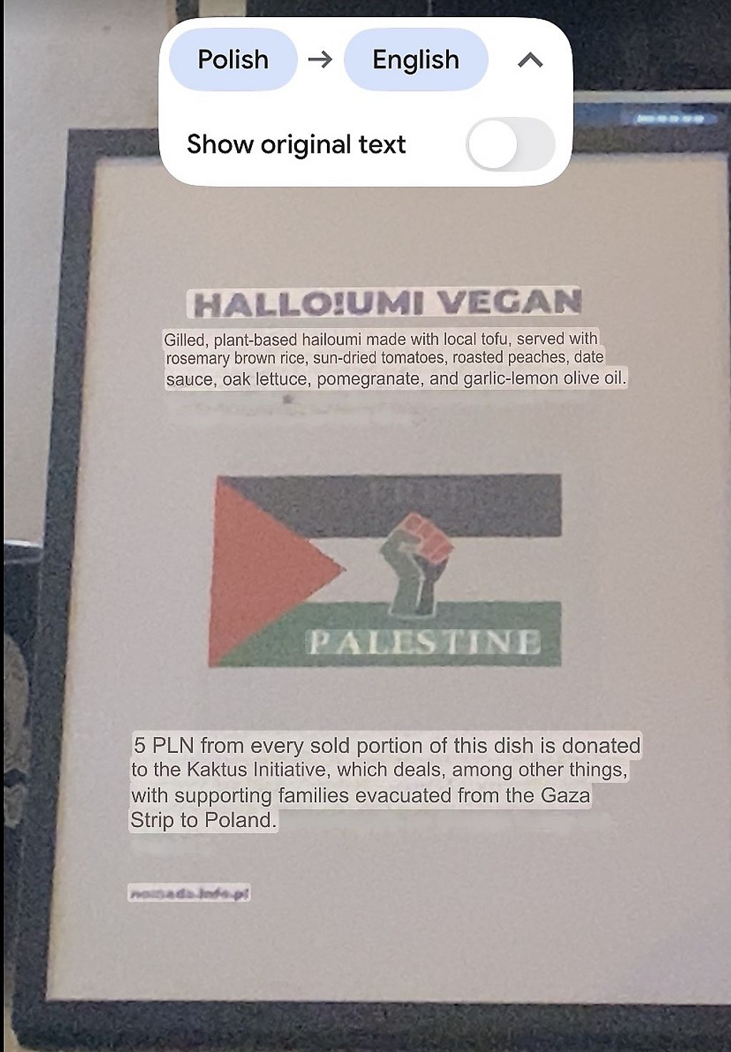 Such a wonderful place. Kind staff, tasty dishes and very meaningful. Order & pay at the counter vibes, with nice drinks on offer too. This was the only place we visited twice on our Warsaw trip, the seitan steak was to die for! They also had a halloumi dish that they donated 5PLN from to a local Gaza charity❤️