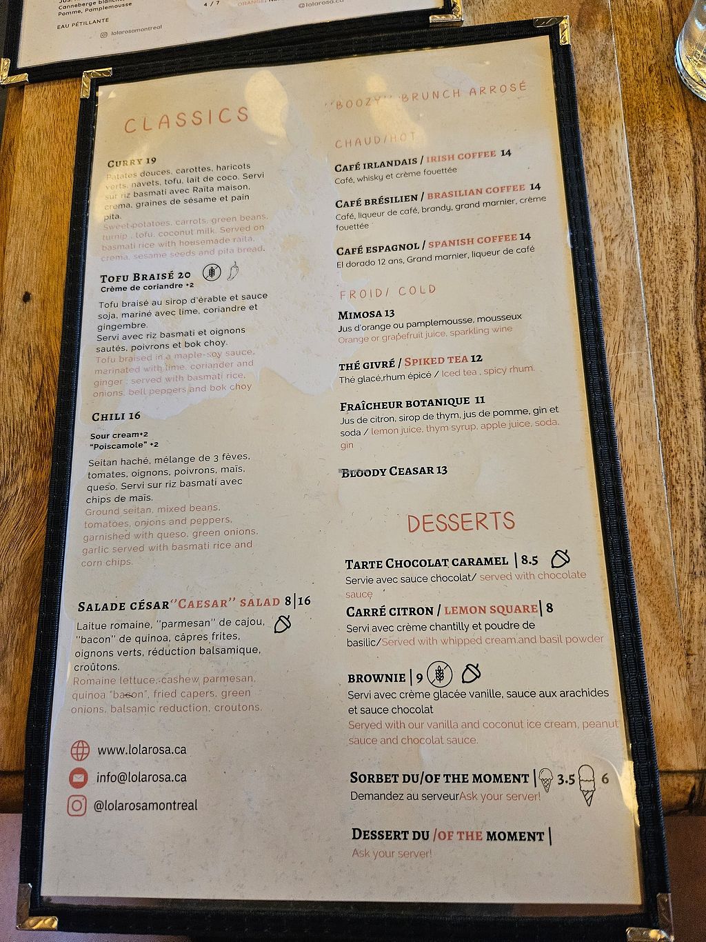 Such a lovely atmosphere at Lola Rosa and the food is delicious! Our server was charming and it was so hard to choose which of the menu items to try - everything looked so good! I liked the Nachos in particular and my non-vegan friend also really enjoyed her meal. I hope I have an opportunity to return before my time in Montréal is over. ☺️